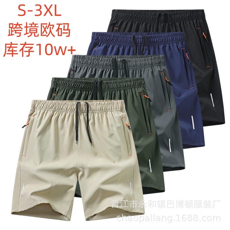 크로스보더 유럽 사이즈 남성 스포츠 반바지 여름 얇은 5부 캐주얼 팬츠 큰 사이즈 루즈핏 러닝 아이스 실크 속건 팬츠