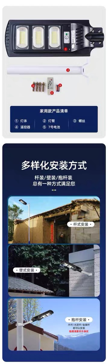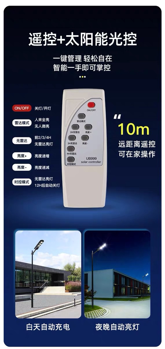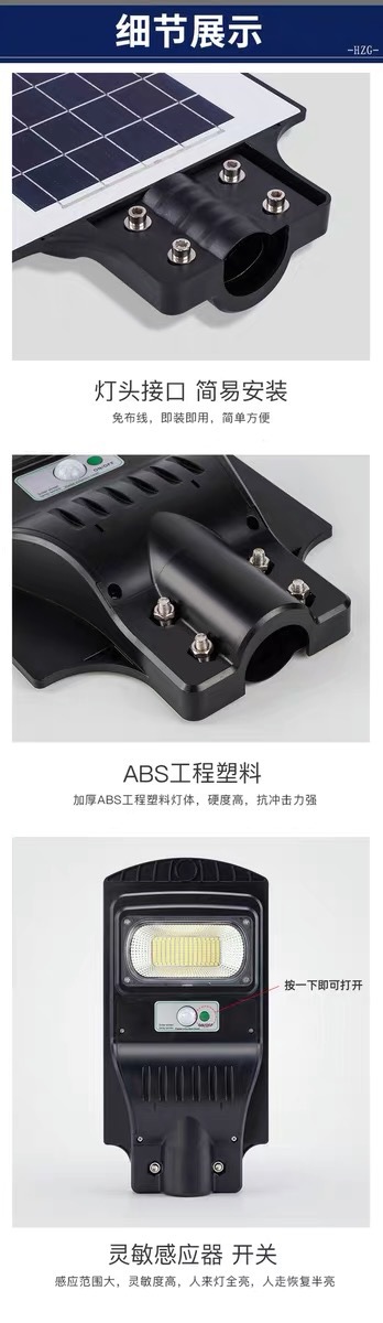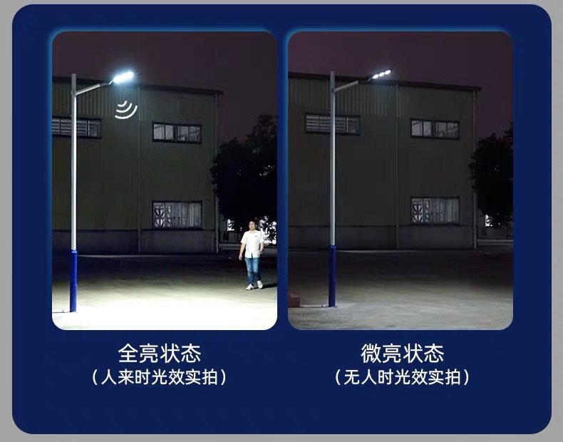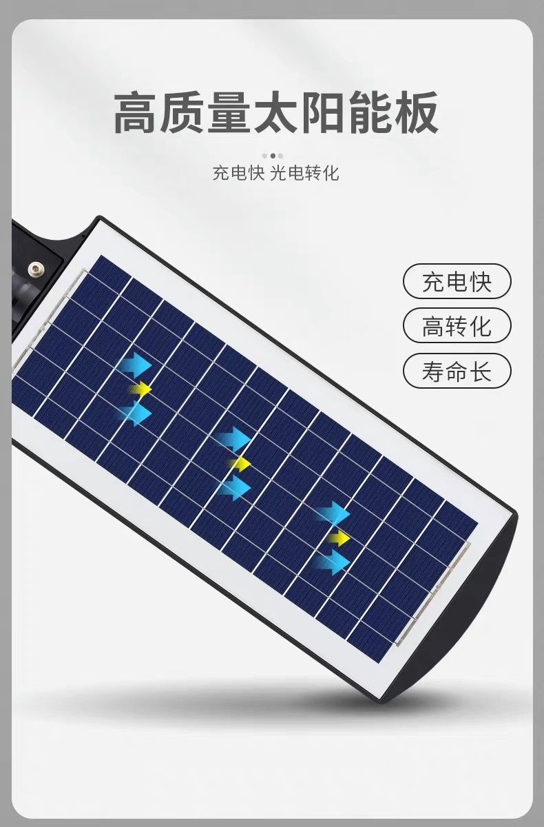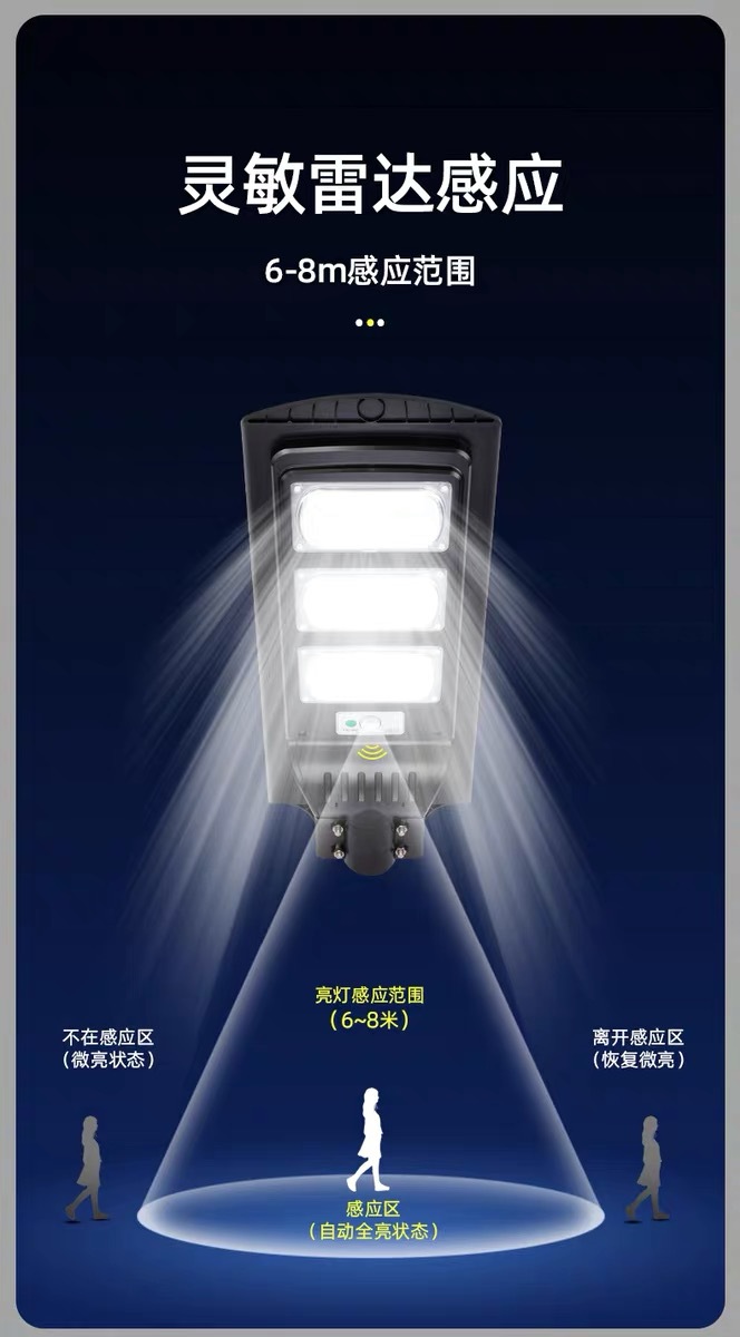 밝은 LED 야외 방수 태양 정원 빛 레이더 높은 전력 유도 통합 태양 가로등 배치스토어 가기