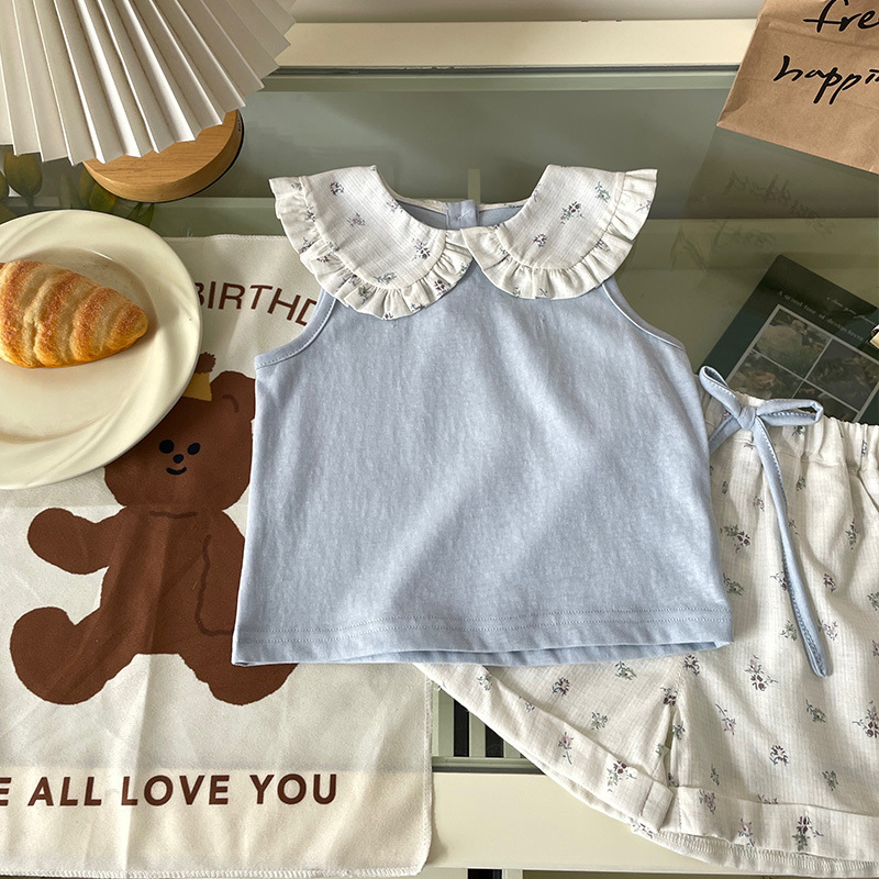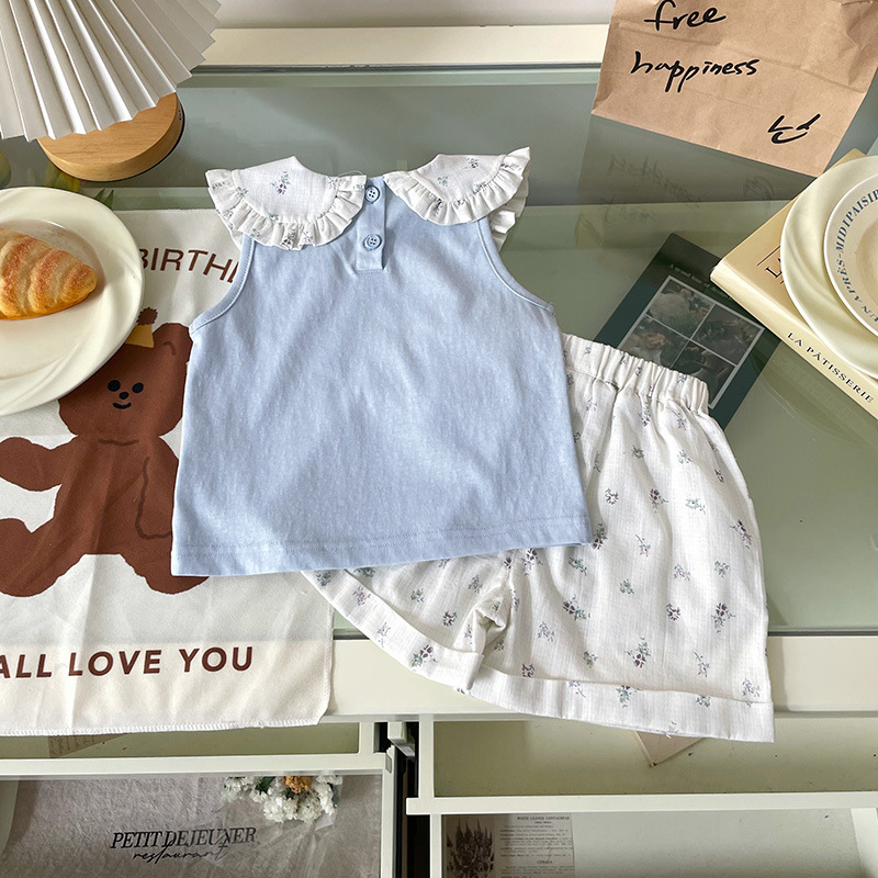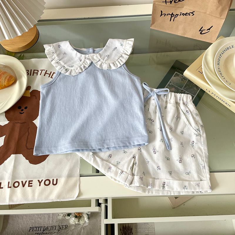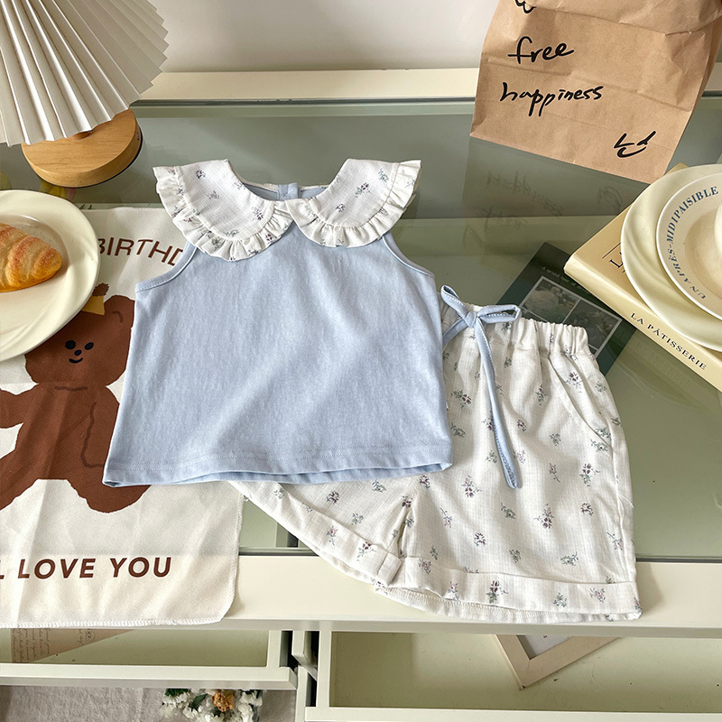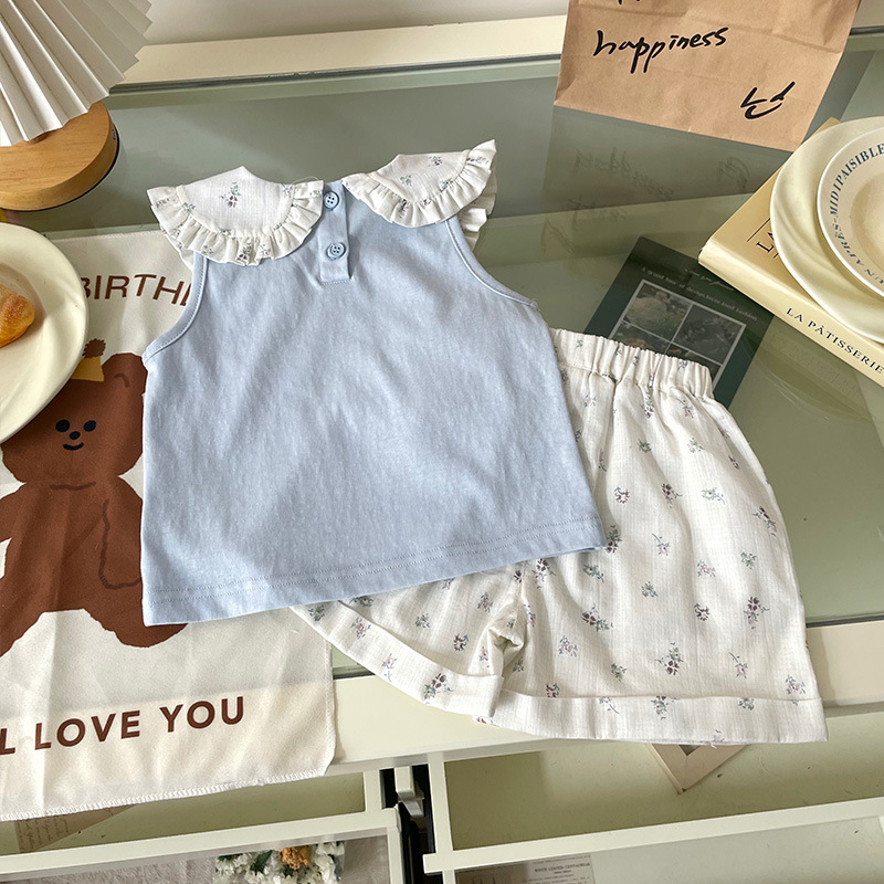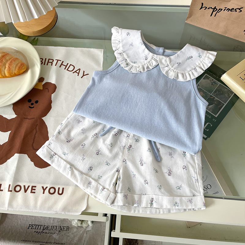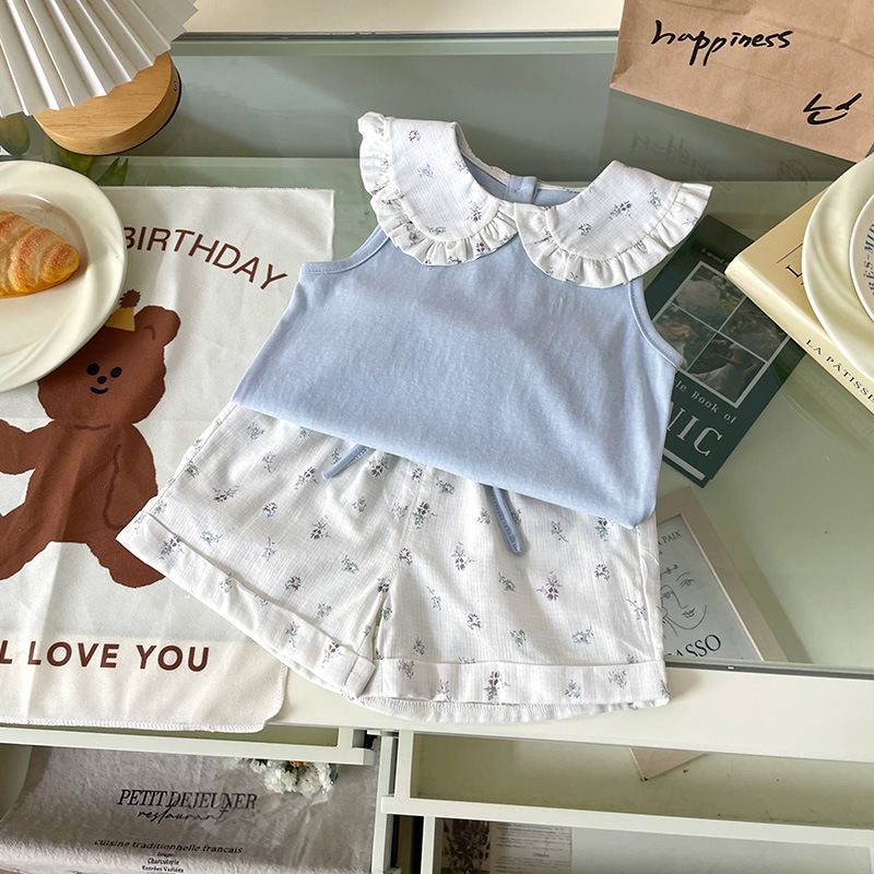 [재고 있음] 여아 정장 2025 여름 신작 한국 스타일 라펠 조끼 꽃무늬 반바지 정장