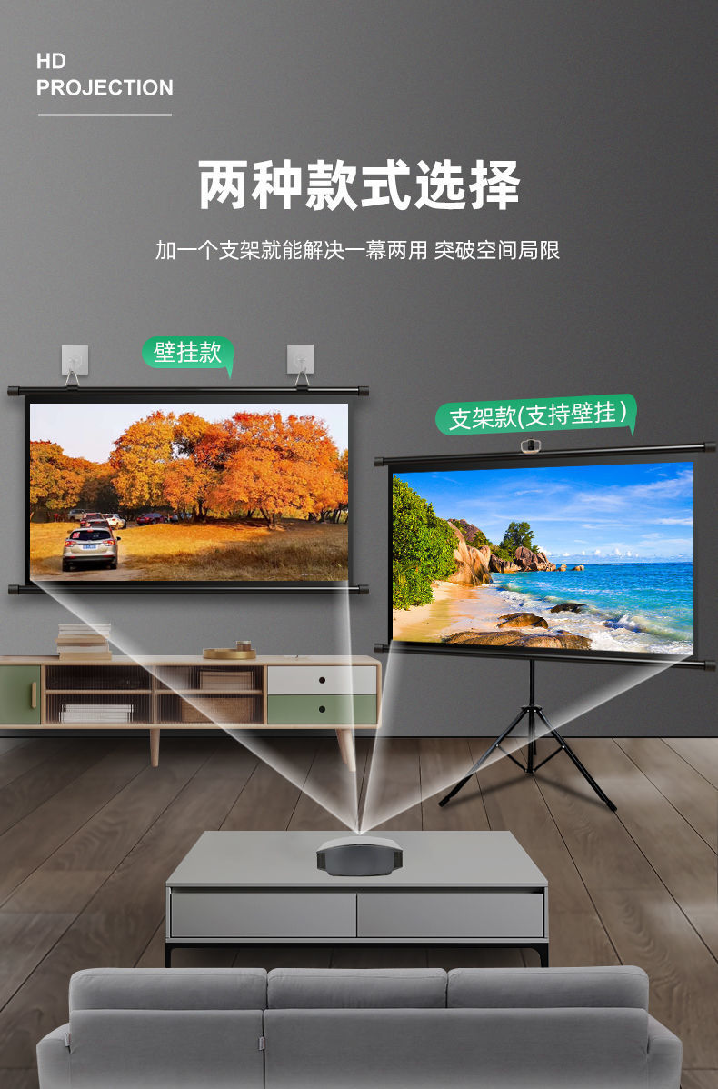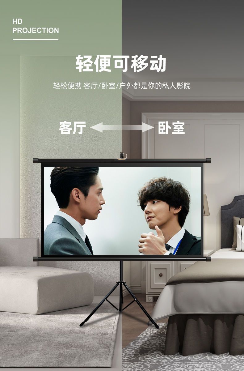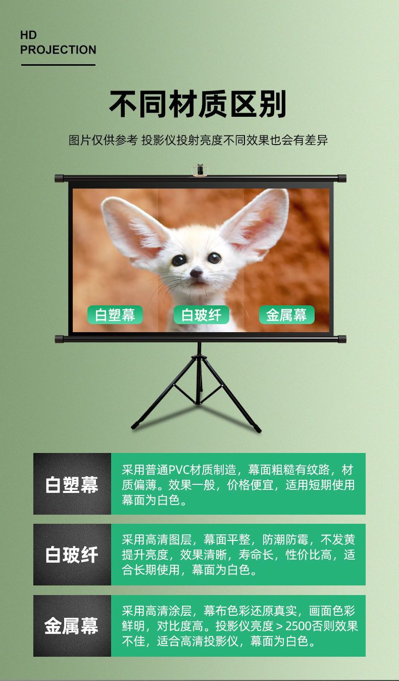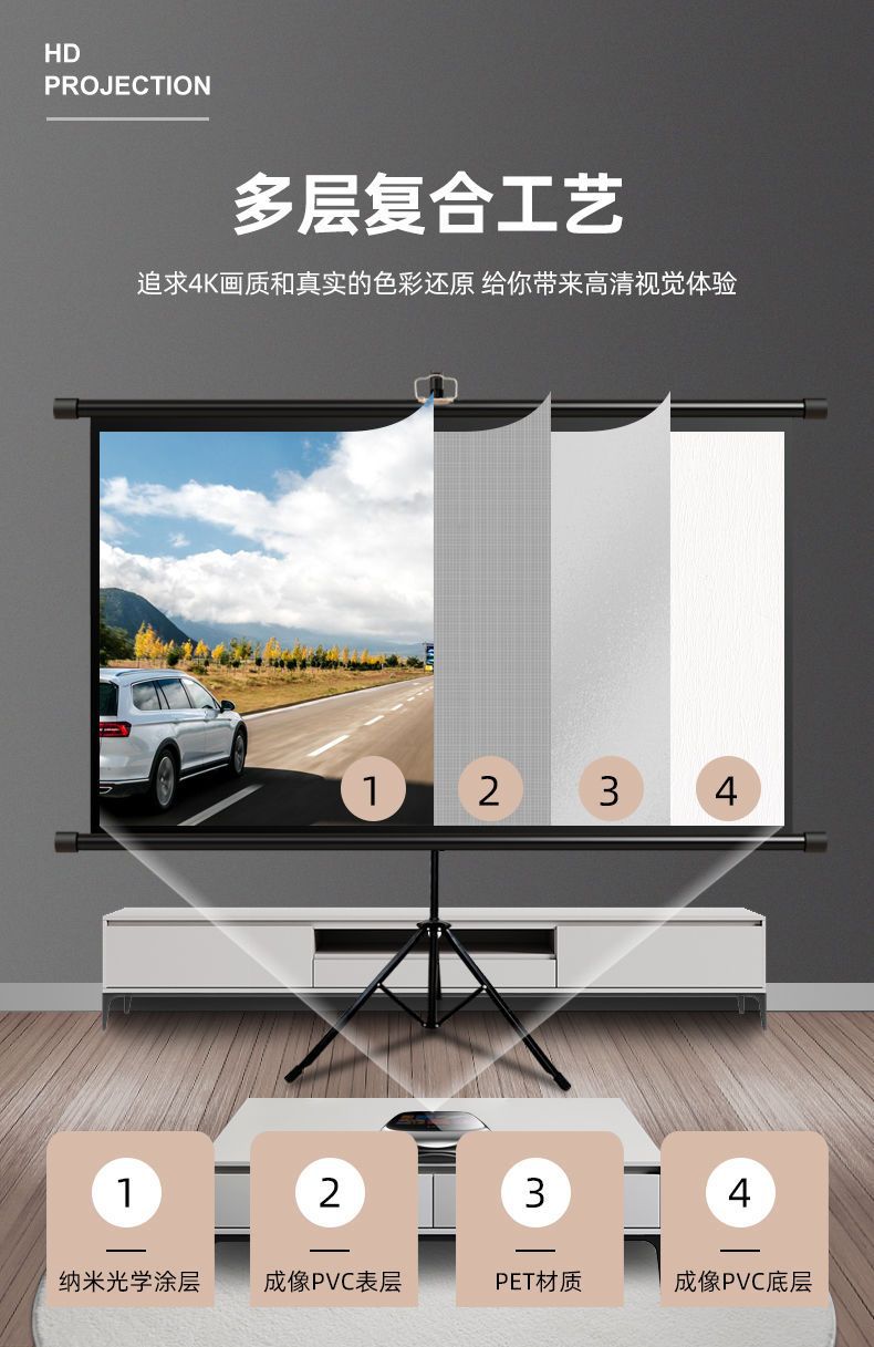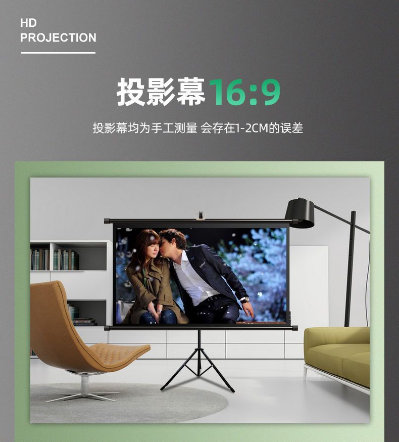 공장 직선 프로젝션 커튼 100 인치 브래킷 프리 브래킷 로드 야외 모바일 프로젝터 커튼