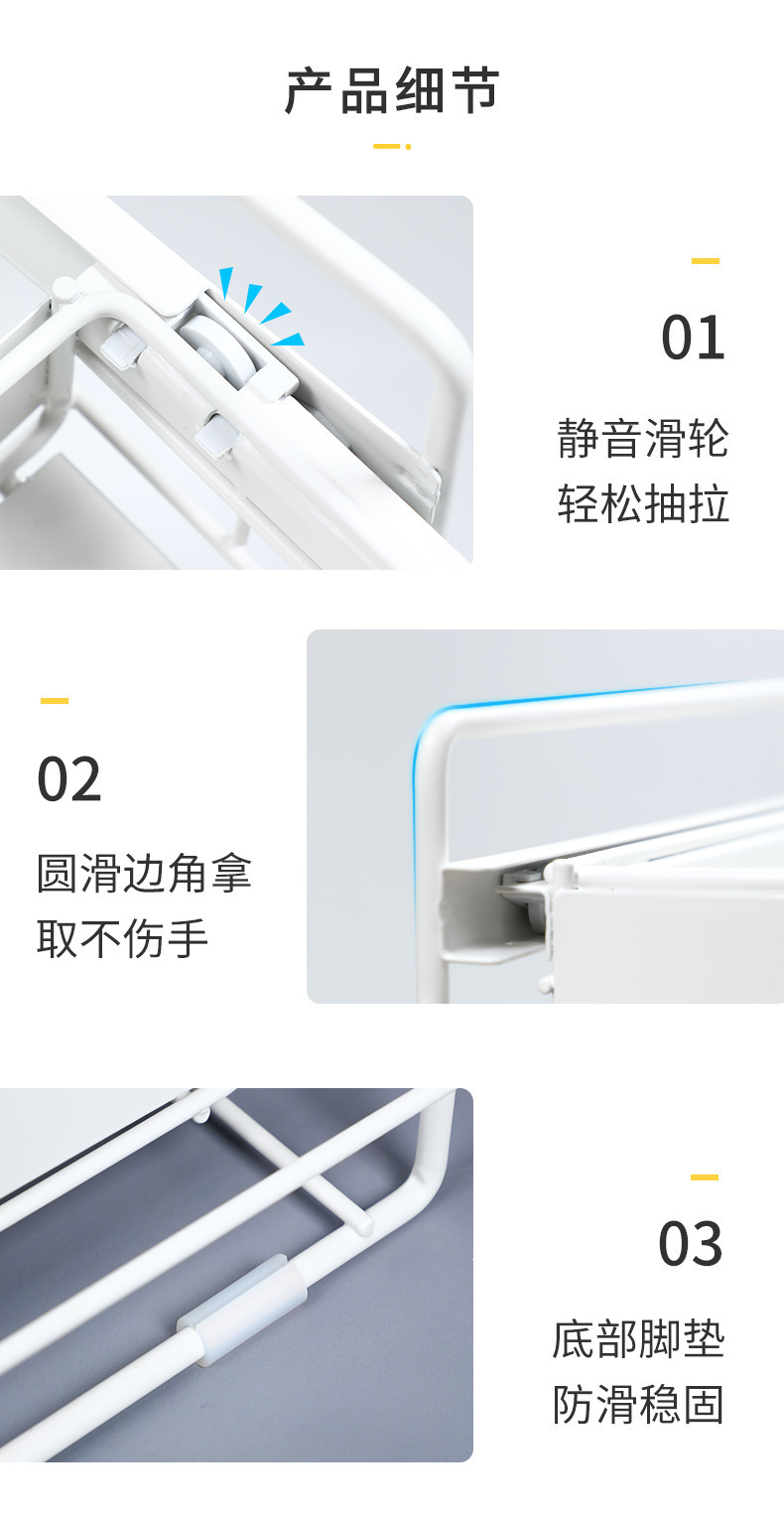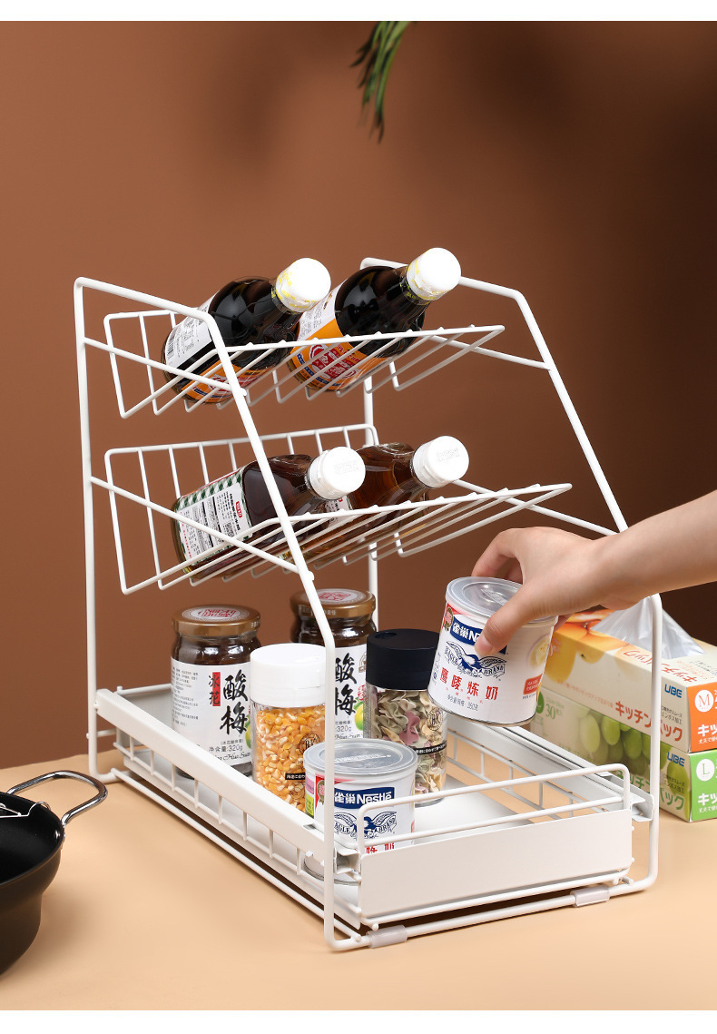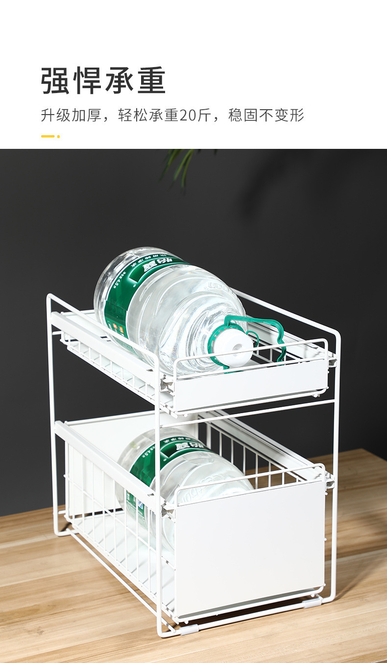낮은 싱크 스토리지 랙 주방 바닥에 서있는 텔레스코픽 스토리지 랙 캐비닛 서랍 가능한 다층 스토리지 랙 스토리지 바구니
