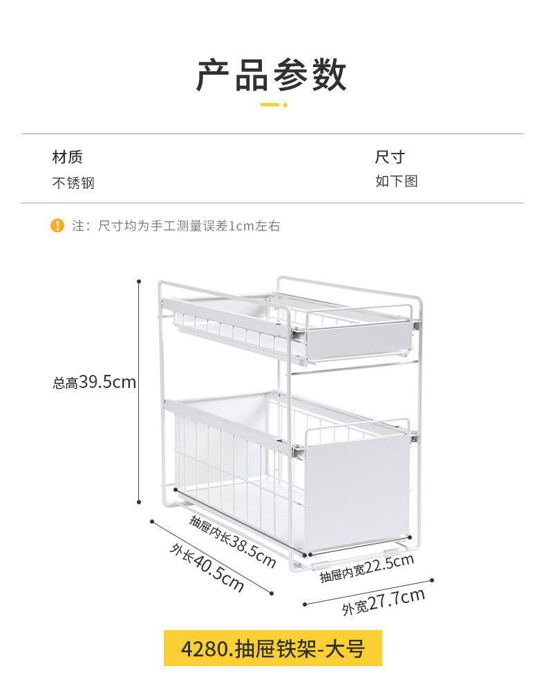 낮은 싱크 스토리지 랙 주방 바닥에 서있는 텔레스코픽 스토리지 랙 캐비닛 서랍 가능한 다층 스토리지 랙 스토리지 바구니스토어 가기