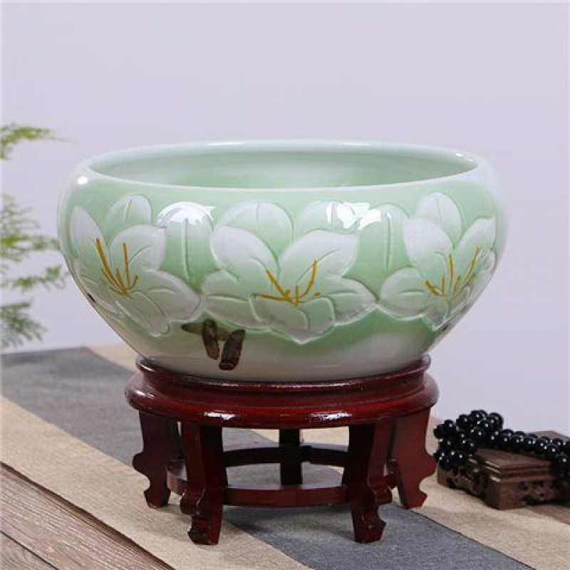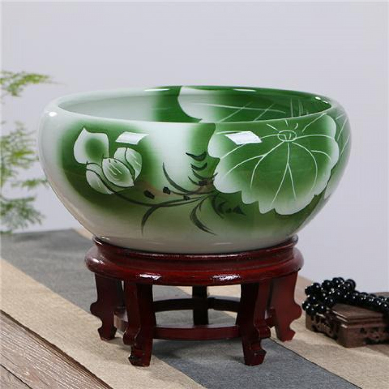 Jingdezhen 세라믹 어항 그릇 연꽃 수련 분지 큰 거북이 물고기 분지스토어 가기