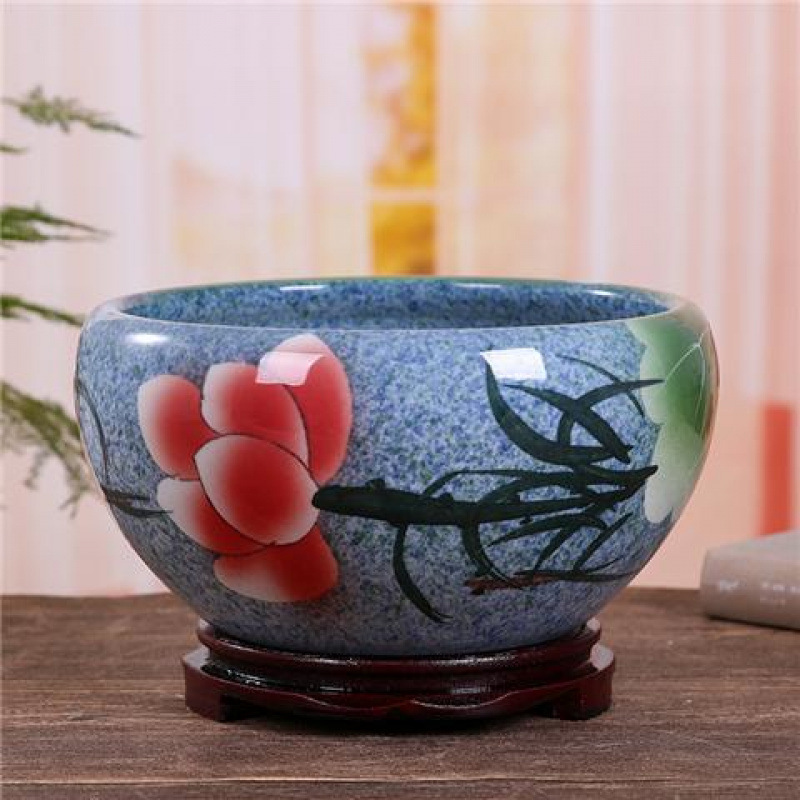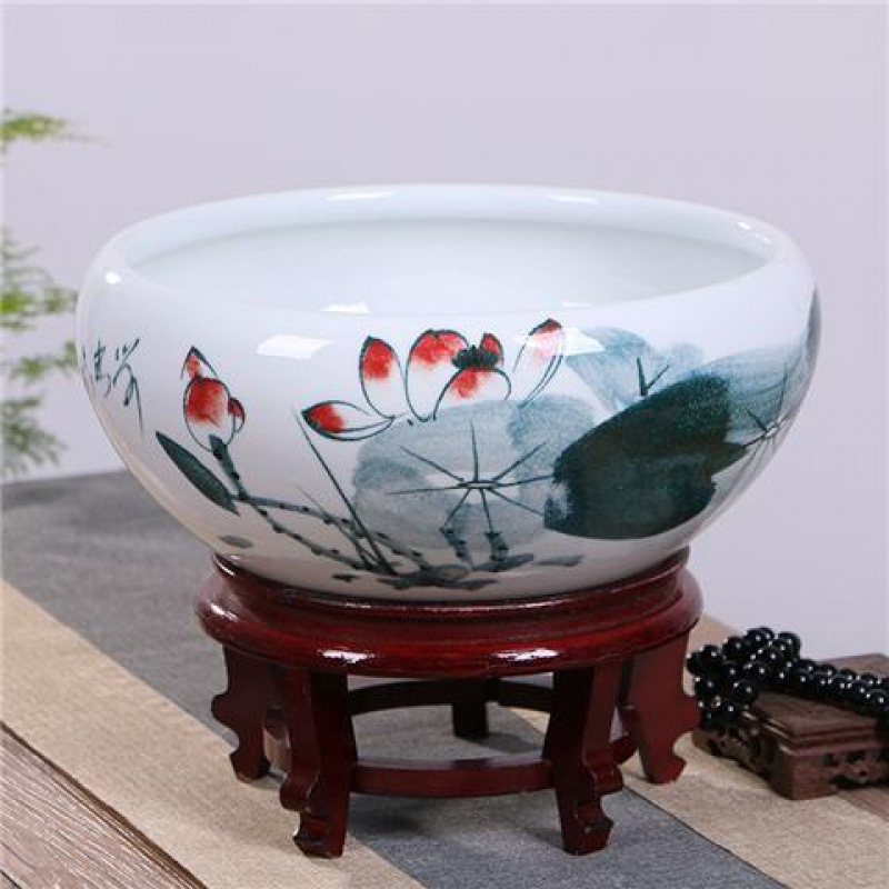 Jingdezhen 세라믹 어항 그릇 연꽃 수련 분지 큰 거북이 물고기 분지