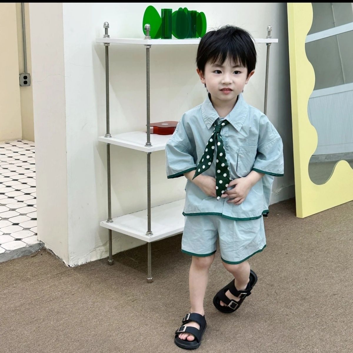 한국 어린이 아카데미 스타일 셔츠 세트 소년 여름 쿨 반팔 아기 캐주얼 올 매치 여름 투피스 세트