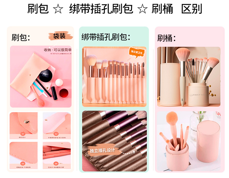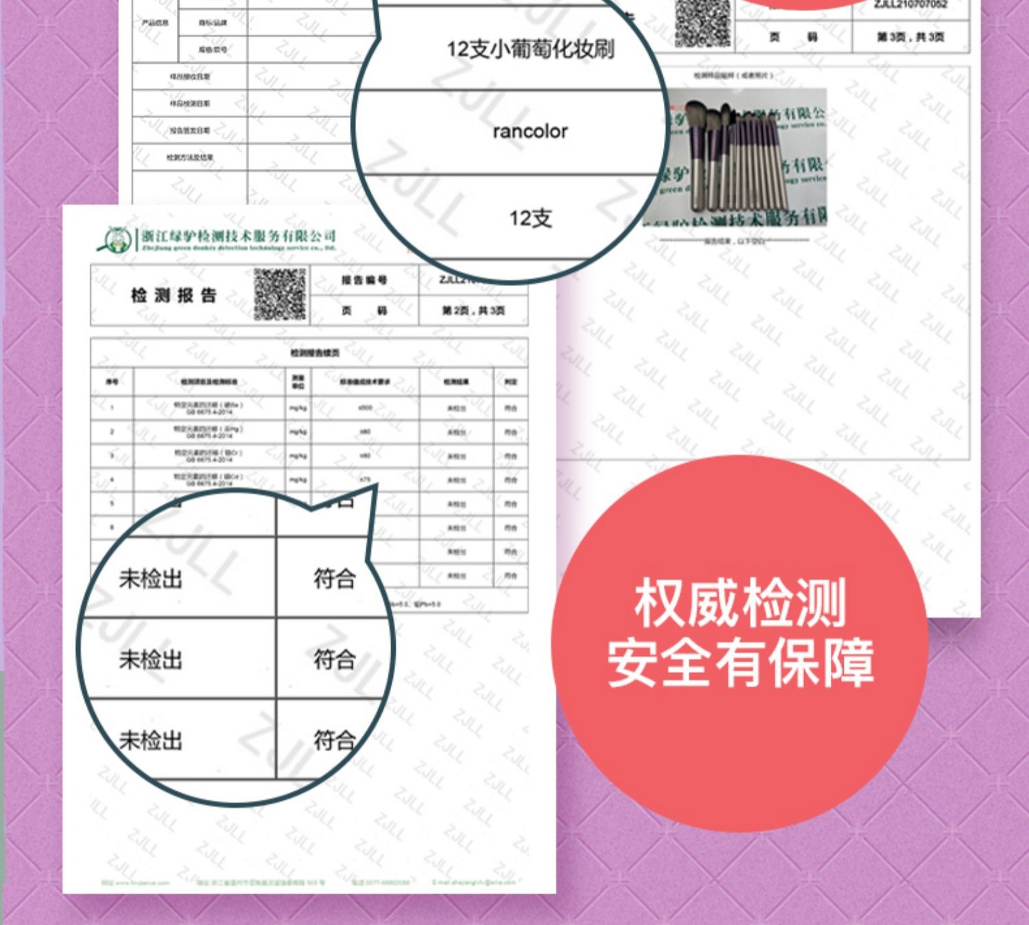 • 작은 포도 메이크업 브러쉬 12개 + 브러쉬 가방