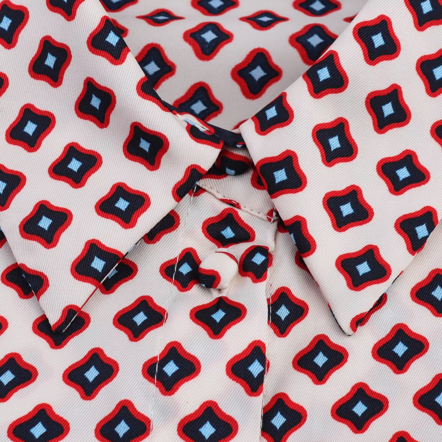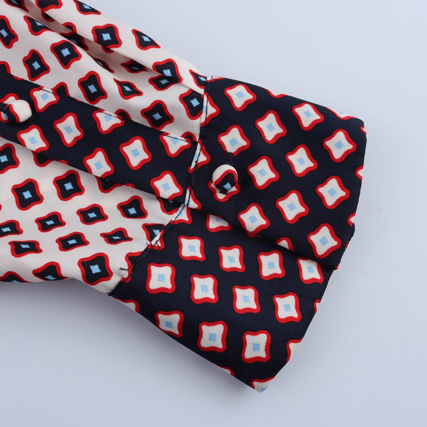2025 봄 새로운 유럽과 미국의 국경 여성 인쇄 긴 소매 셔츠 스트레이트 팬츠 세트 w025 11305