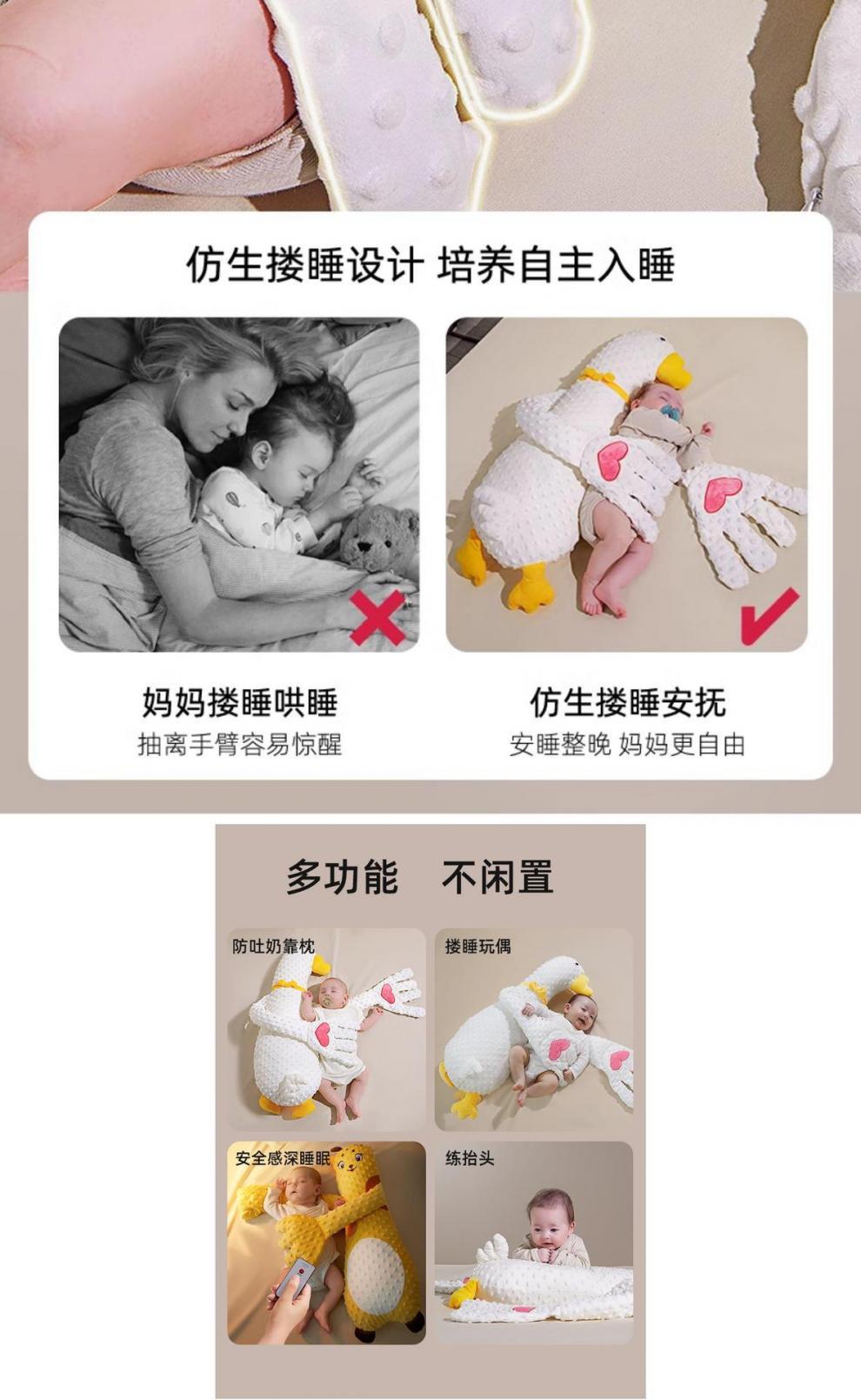 아기 배기 베개 큰 흰색 거위 동축 아기 때리고 손바닥 아기를 달래기 위해 자만심을 방지하기 위해 독립적으로 잠을 자다 2 월 문제스토어 가기
