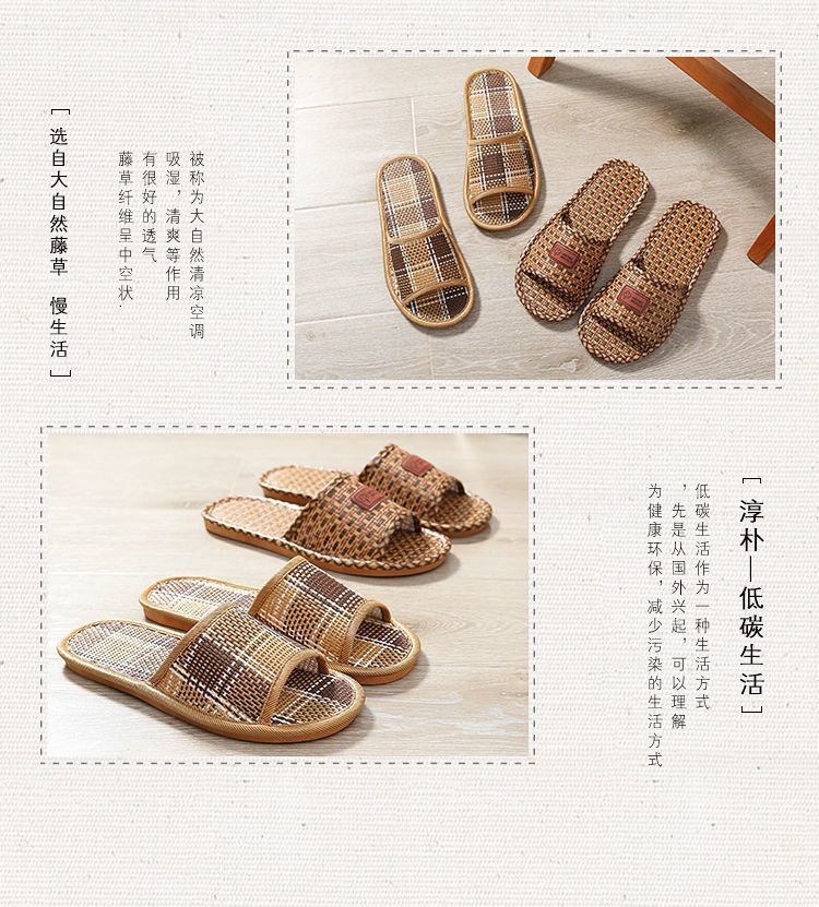 가정용 샌들 및 슬리퍼 컬렉션 남성과 여성의 집 5 구매 1 개 무료 시원한 사람들 여름 대나무 등나무 잔디 애호가 119스토어 가기