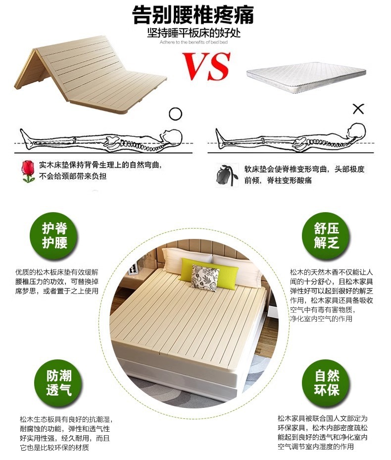 단단한 나무 단단한 침대 보드 1.8 접히는 소나무 단단한 매트리스 0.6m 허리 보호 척추 보드 1.5 m 개스킷 행 프레임