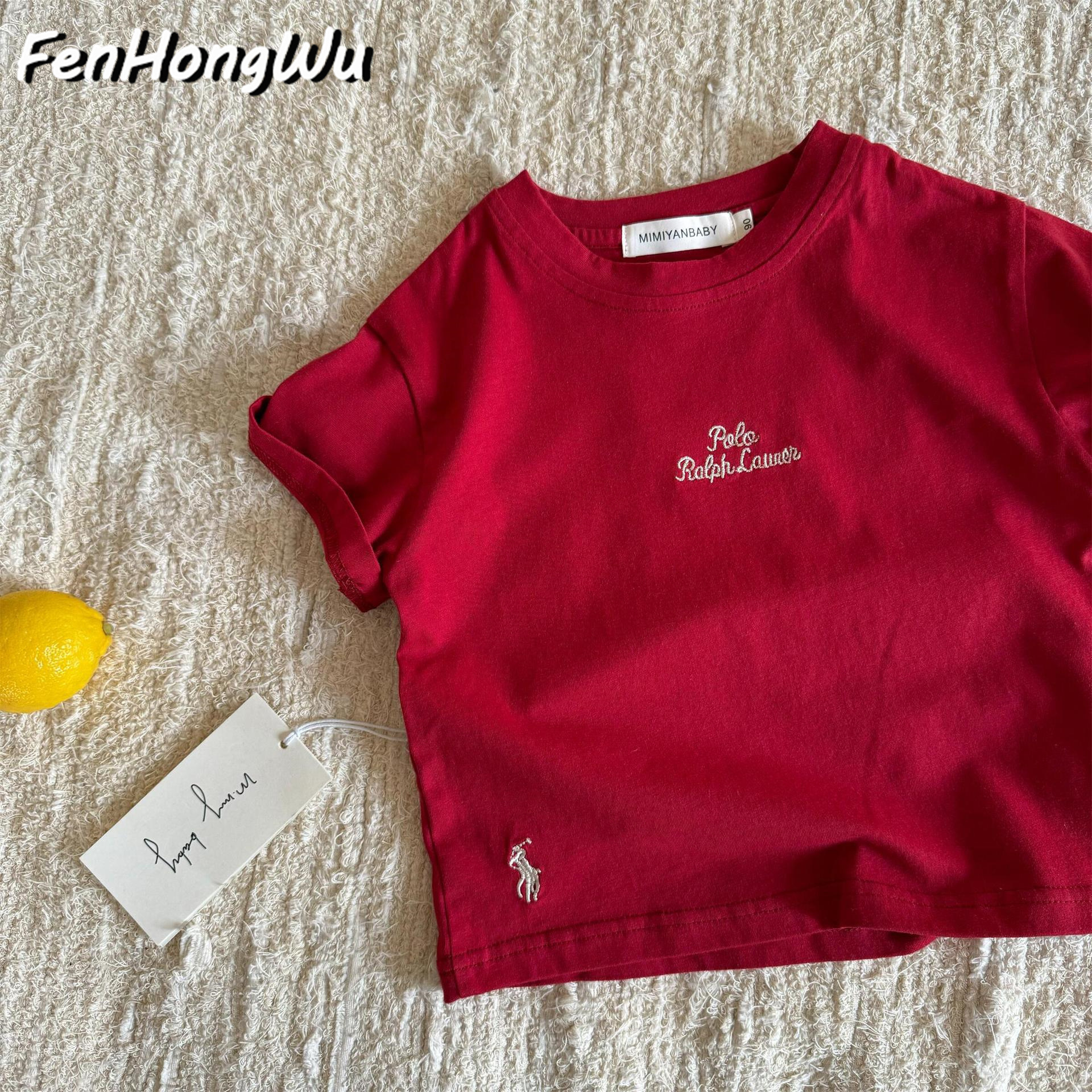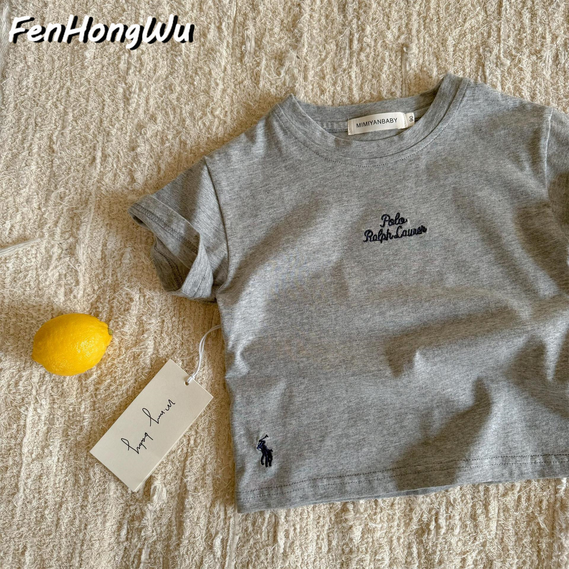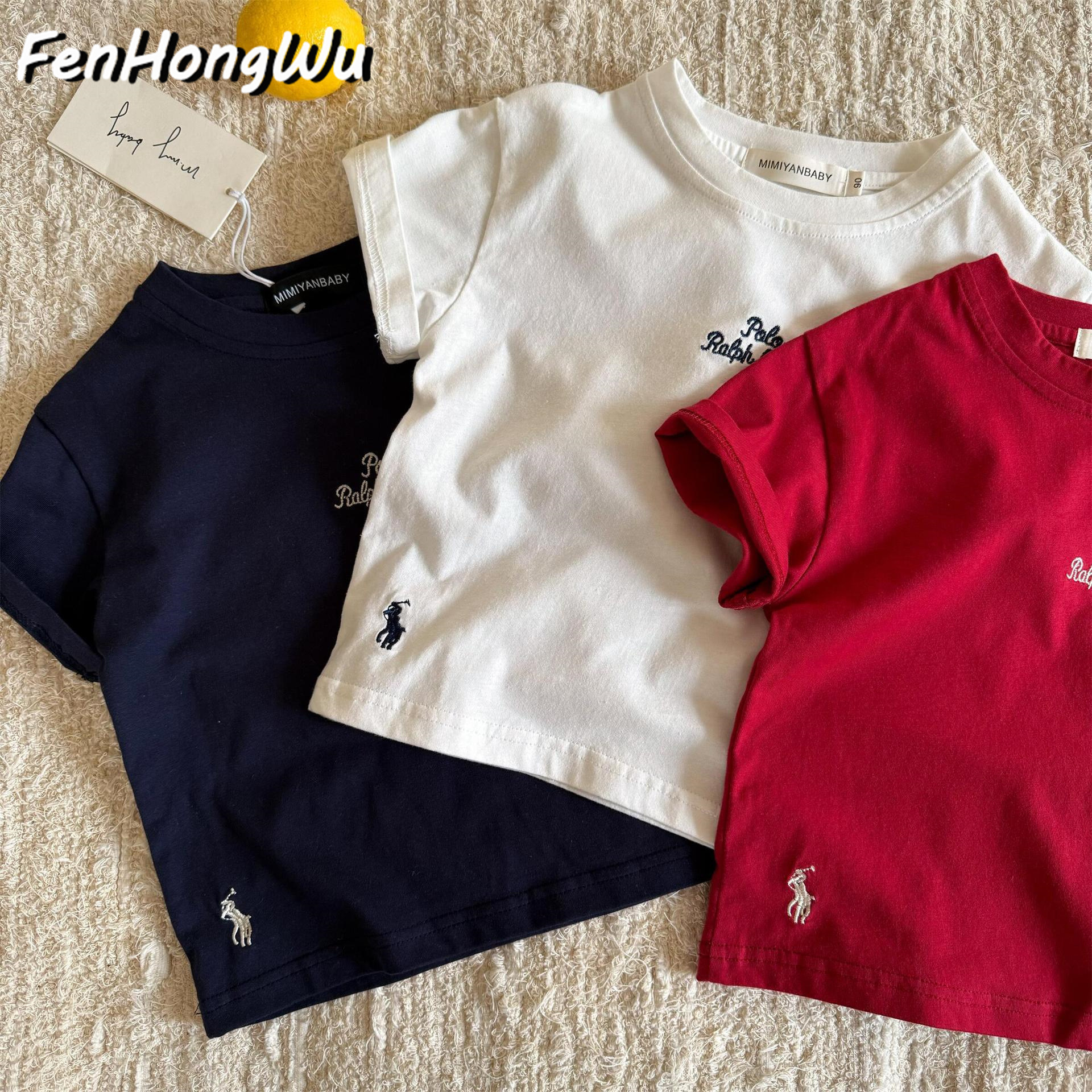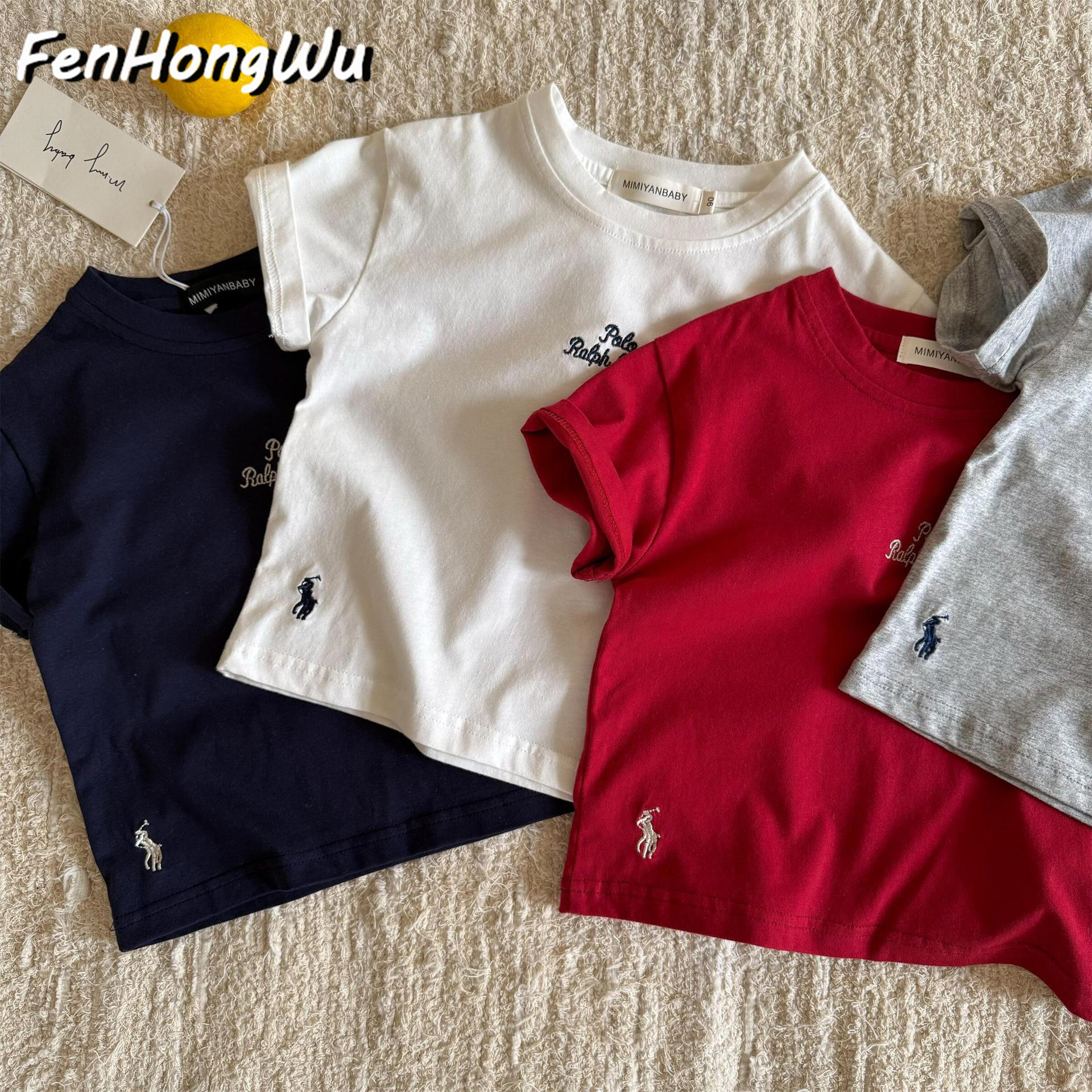 [핑크 하우스] 어린이 반팔 여름 새 소녀와 소년 줄무늬 자수 짧은 소매 T 아기 간단한 편지 티셔츠스토어 가기
