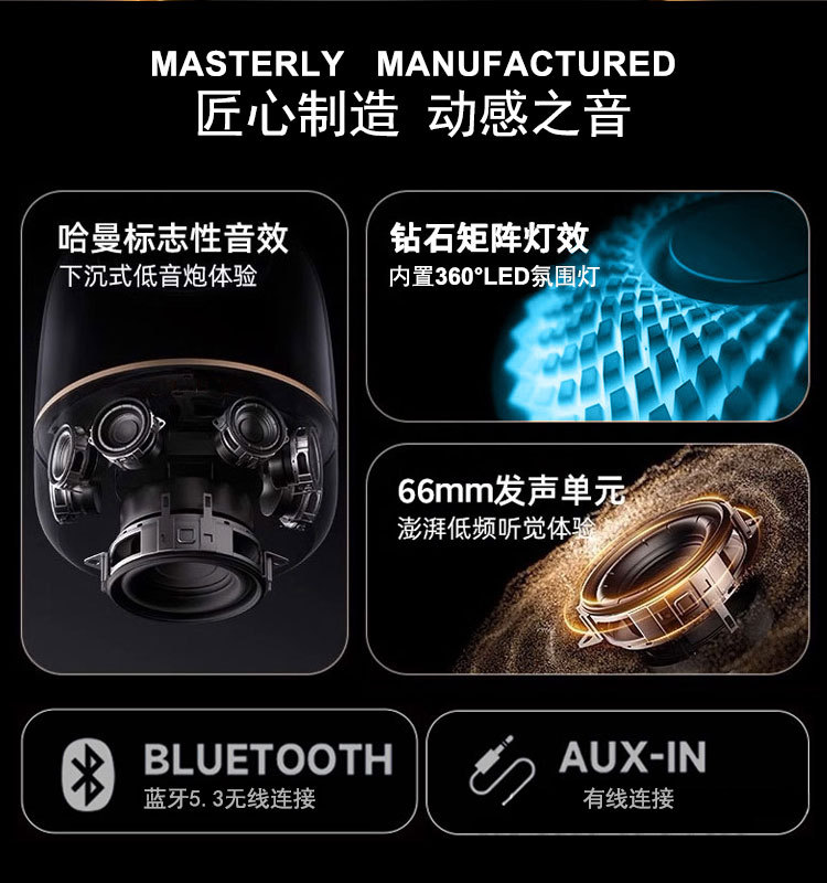 블루투스 스피커 중저음 강화 화려한 색상의 하만 글라시 무선 블루투스 소형 가정용 고급스러운 컴퓨터 스피커
