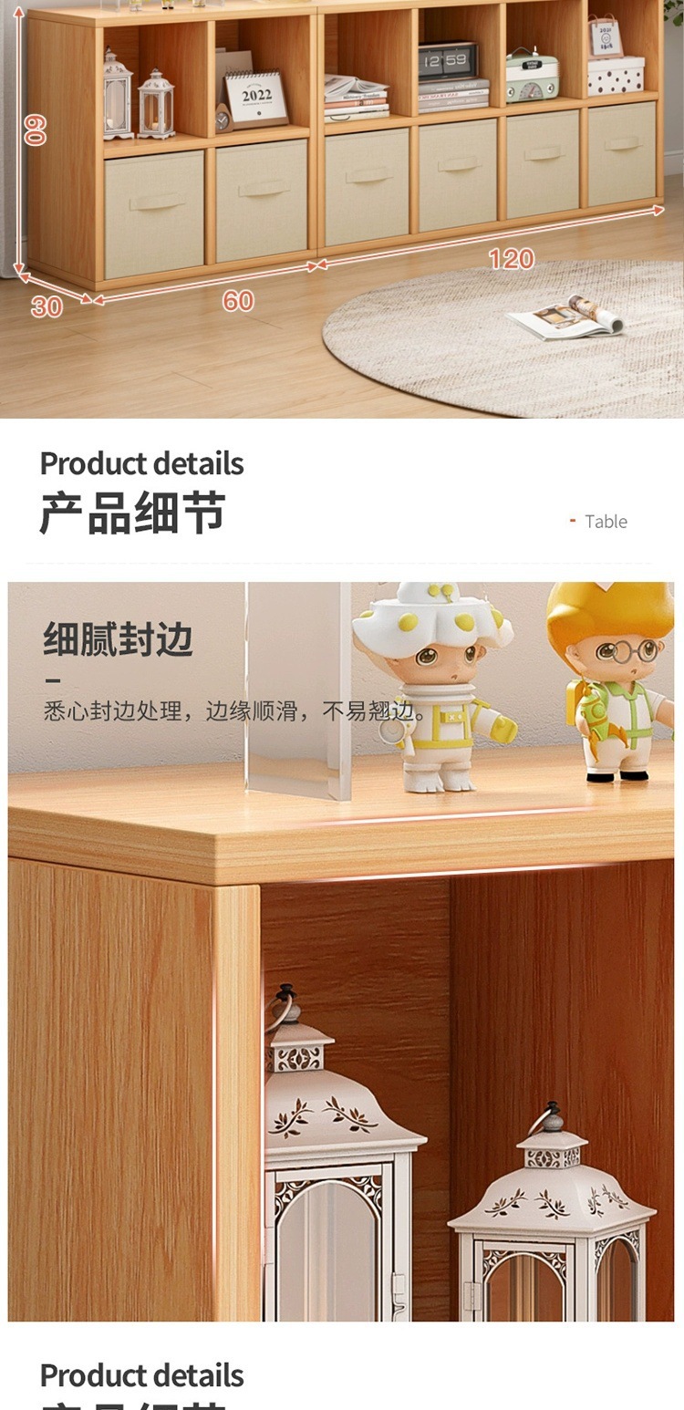 奶油风化妆品置物架桌侧边落地一体格子柜八格柜护肤品香水收纳柜