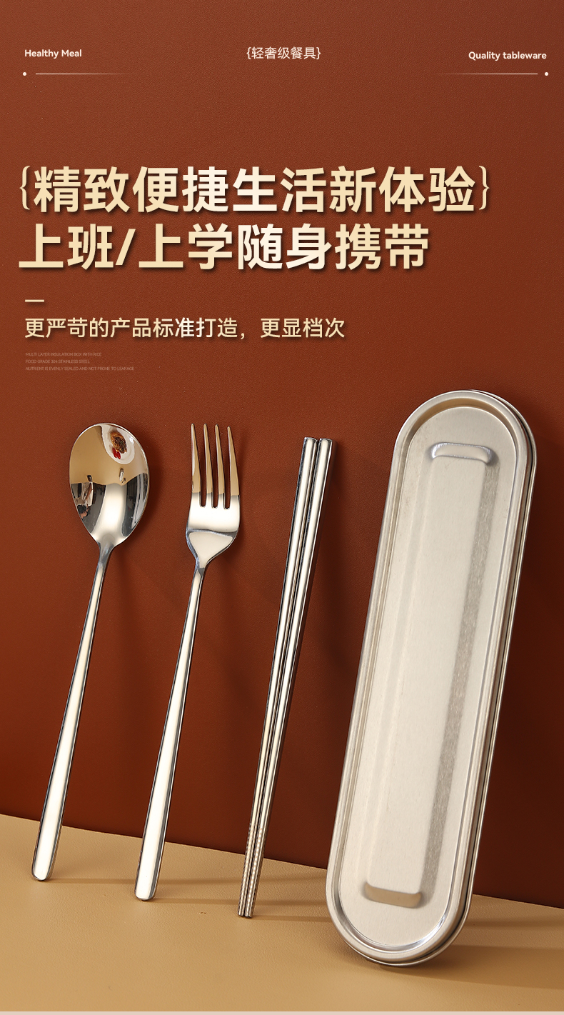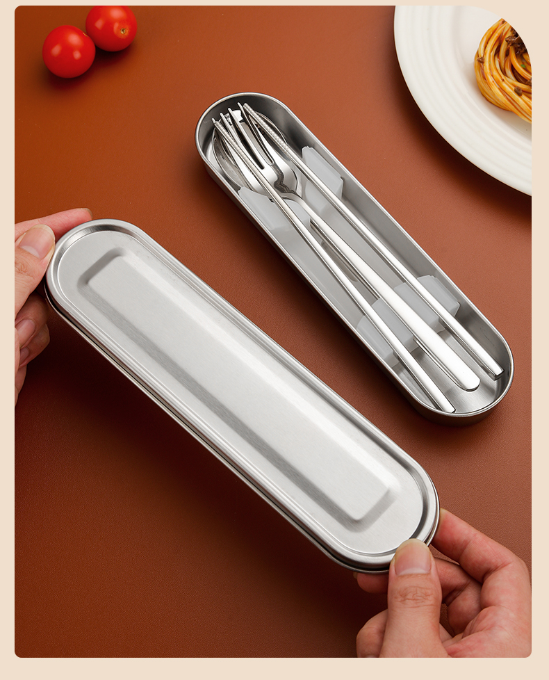 316 스테인레스 스틸 젓가락 숟가락 세트 테이크 아웃 작업 단일 식기 상자 학생 휴대용 저장 상자스토어 가기