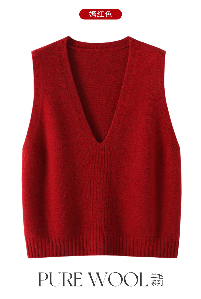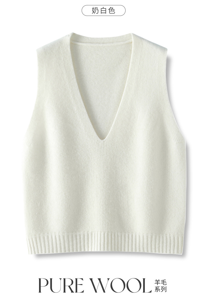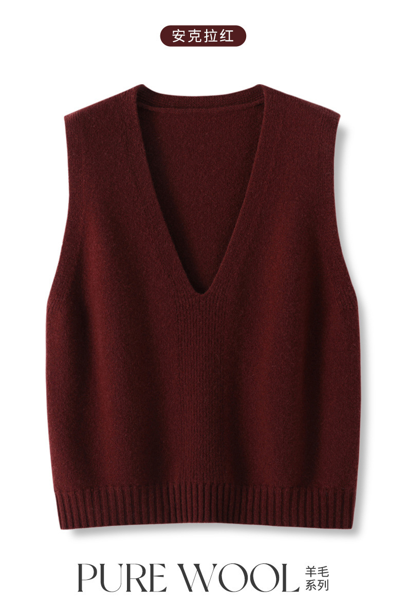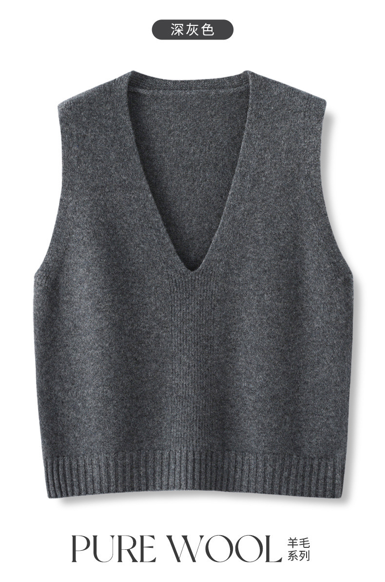 가을과 겨울에 여성을위한 100% 순수 양모 대형 V 넥 니트 조끼 오버레이 솔리드 컬러 스웨터 조끼 느슨하고 게으른스토어 가기