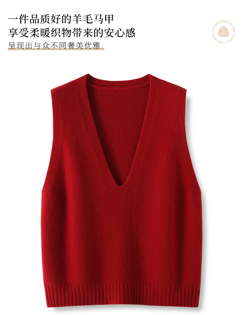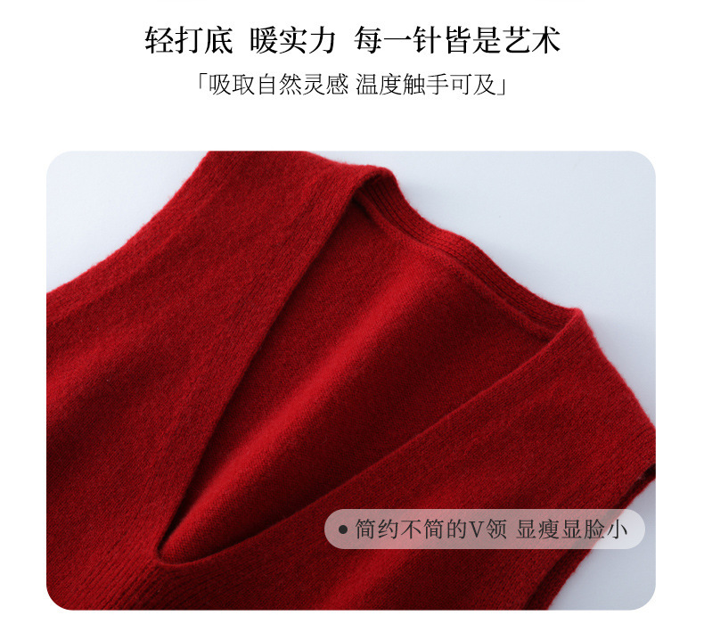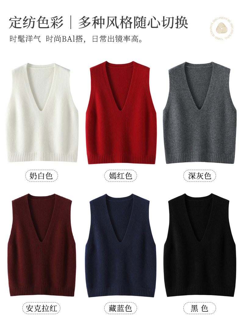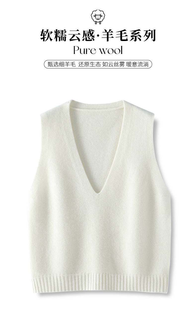 가을과 겨울에 여성을위한 100% 순수 양모 대형 V 넥 니트 조끼 오버레이 솔리드 컬러 스웨터 조끼 느슨하고 게으른스토어 가기