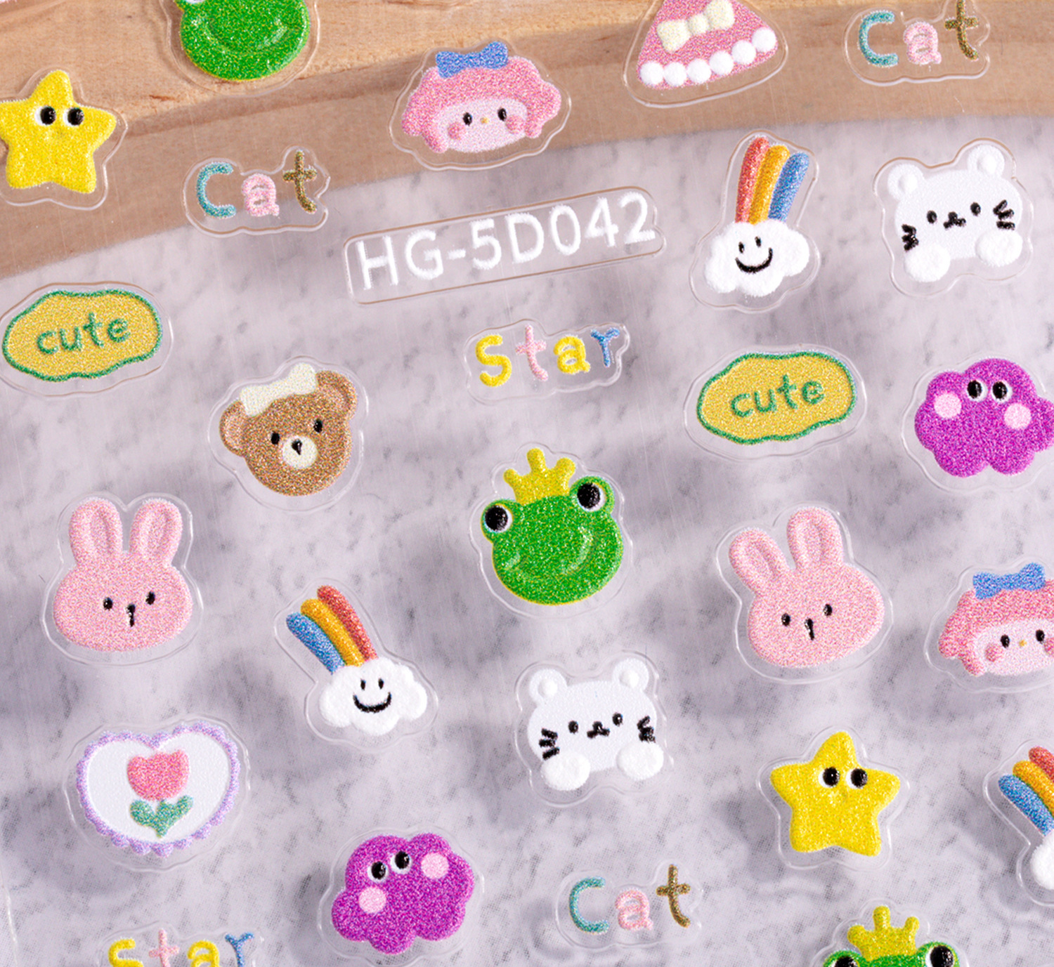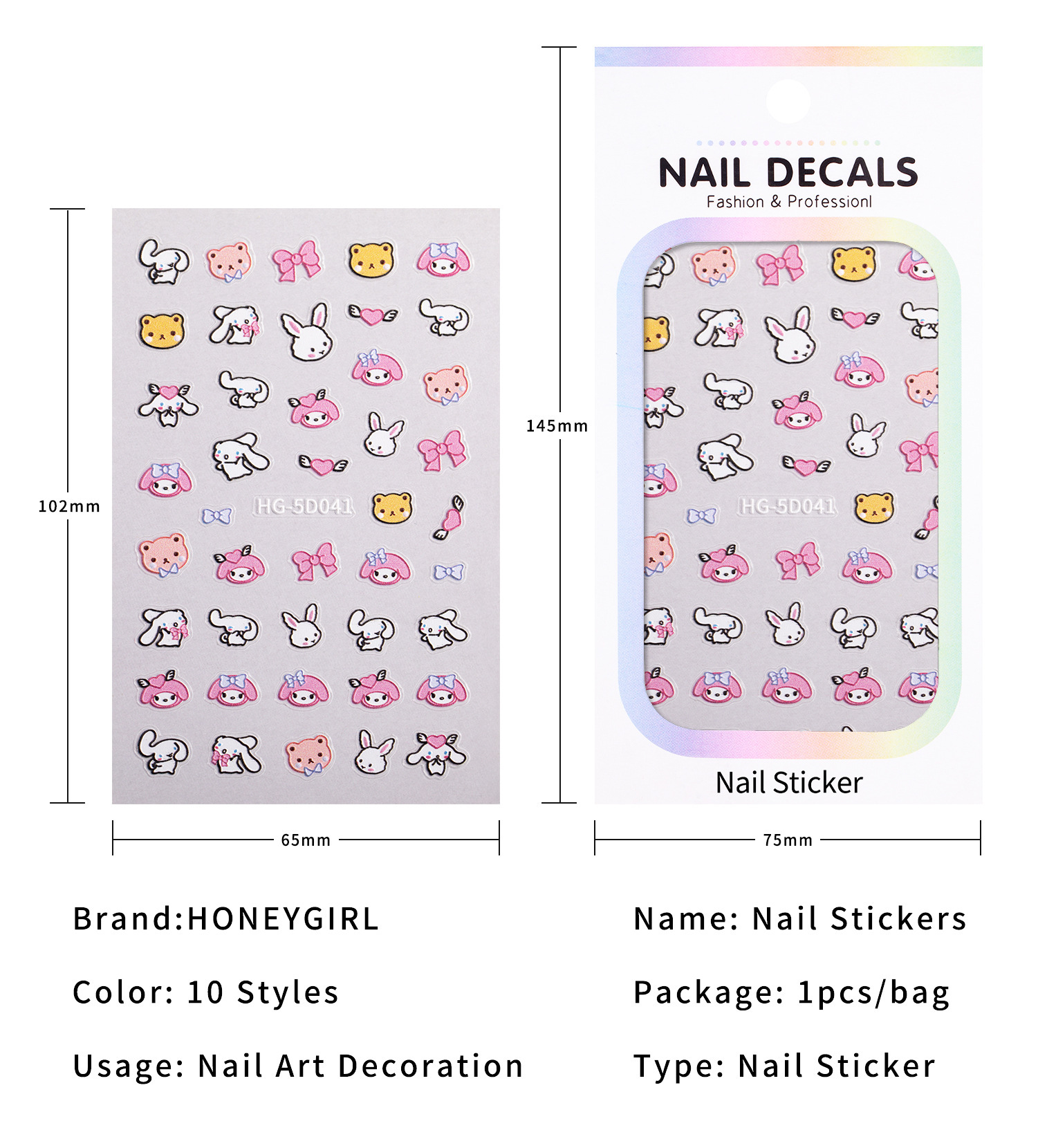 귀여운 만화 네일 스티커 5D 구호 3 차원 귀여운 파르칼 개 역사 루피 네일 아트 스티커 보석 HG스토어 가기