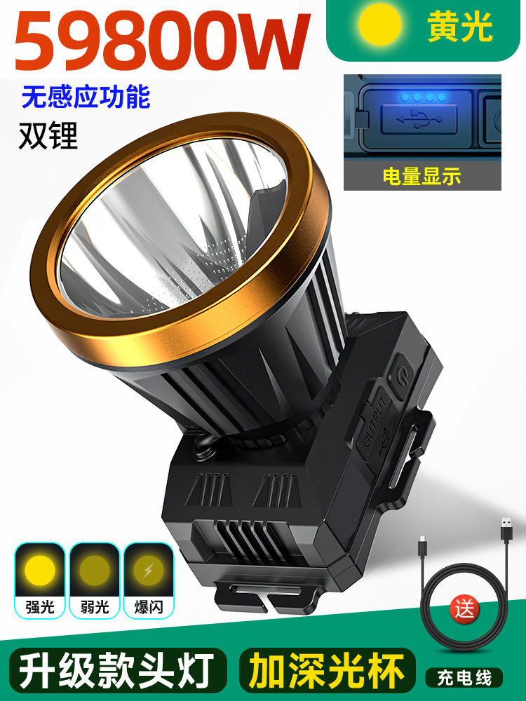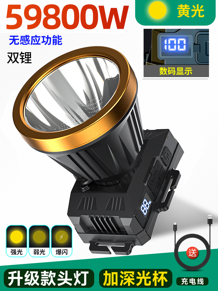 • 듀얼 리튬 배터리 59800W 노란색 표시등 [400시간] 디지털 디스플레이 + 유도 없음 [더 큰 광점] 헤드밴드 + 데이터 케이블 장착