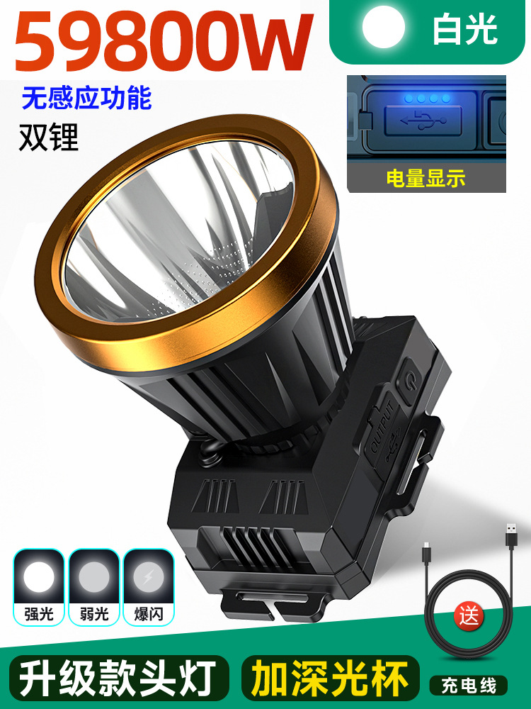 • 듀얼 리튬 배터리 59800W 백색광 [400시간] 디지털 디스플레이 + 유도 없음 [더 큰 광점] 헤드 로프 + 데이터 케이블 장착