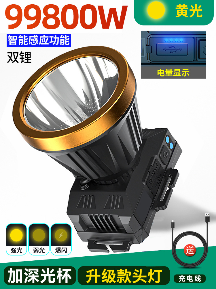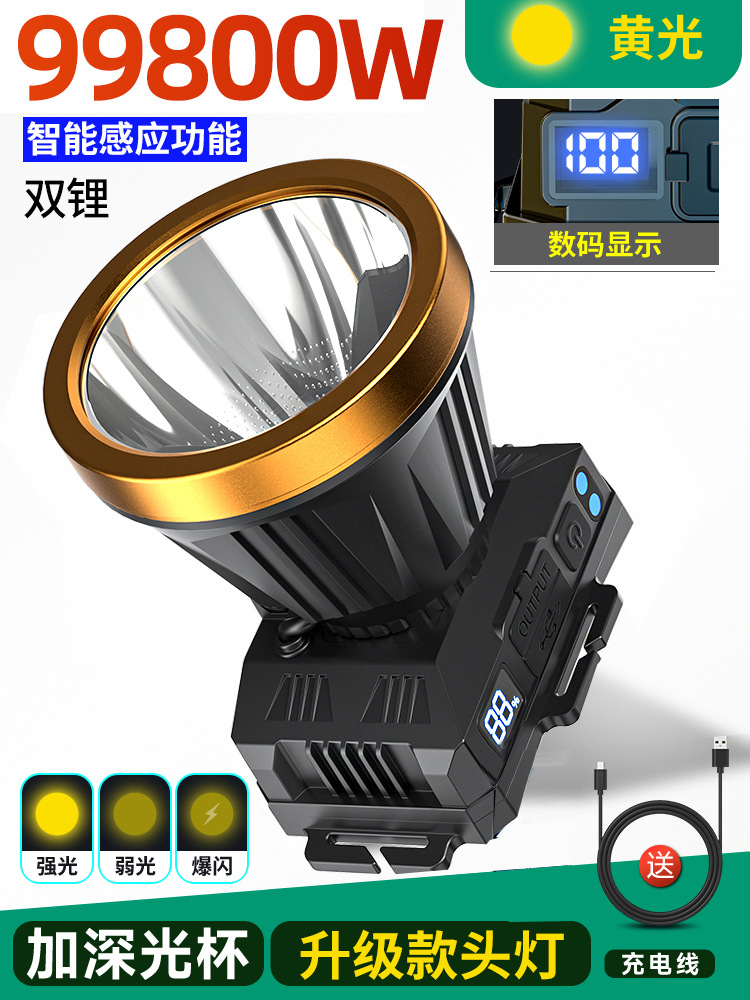 • 듀얼 리튬 배터리 99800W 황색광[600시간] 유도[더 큰 광점] 헤드밴드 + 데이터 케이블 장착