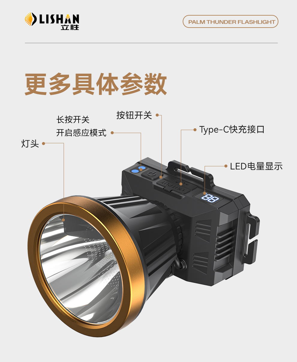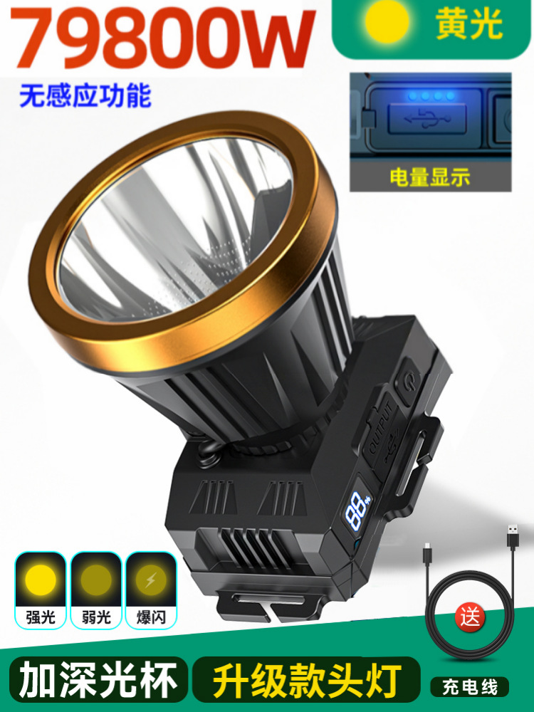 • 듀얼 리튬 배터리 79800W 노란색 표시등 [500시간] 디지털 디스플레이 + 유도 없음 [더 큰 광점] 헤드 로프 + 데이터 케이블 장착