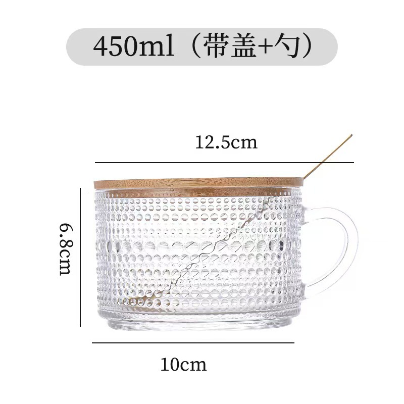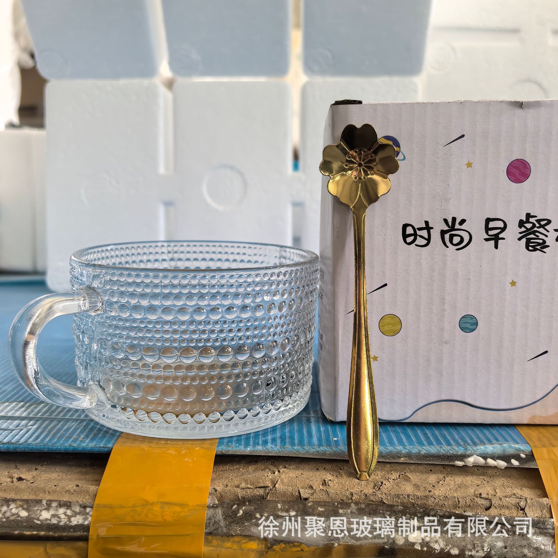 고급스러운 물컵, 예쁜 디자인의 인스타그램 조식컵, 스푼이 포함된 유리 머그컵, 오트밀, 투명 손잡이, 우유스토어 가기