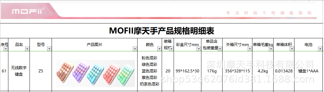 Mofii 마천루 손 숫자 키보드 공장 뜨거운 판매 무선 숫자 키패드 Z5 미니 키보드 음소거 사무실스토어 가기