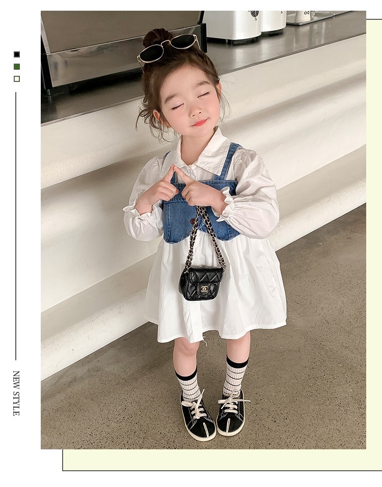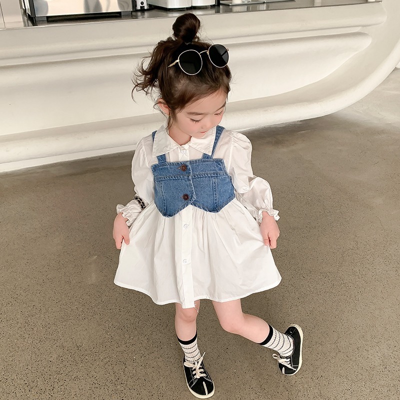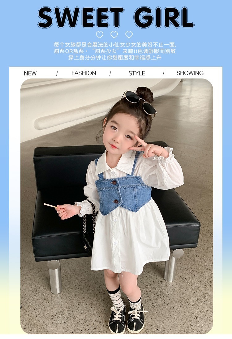여자 원피스 봄 2025 새로운 한국식 어린이 셔츠 원피스 투피스 아기 소녀의 원피스 패션스토어 가기