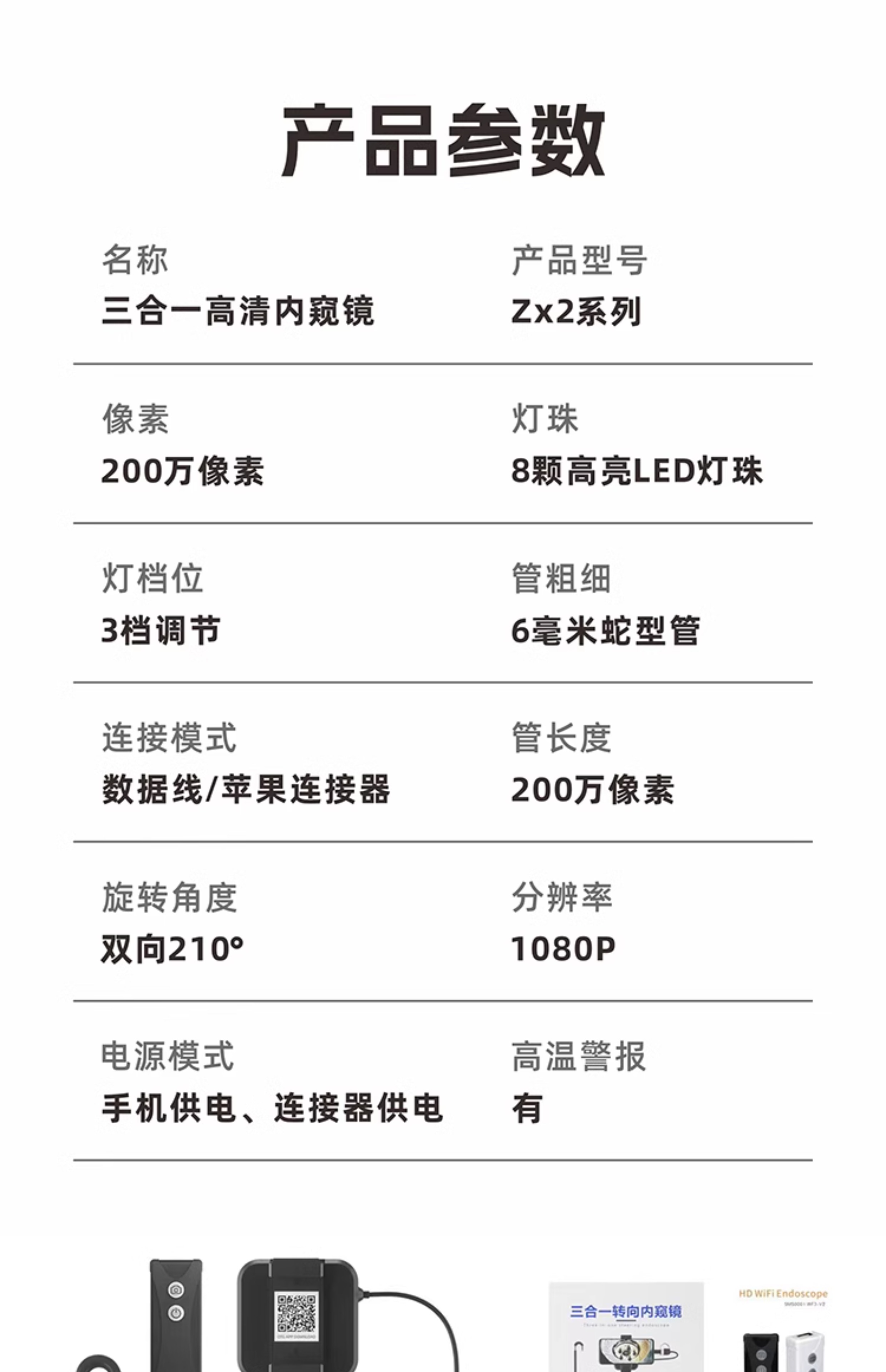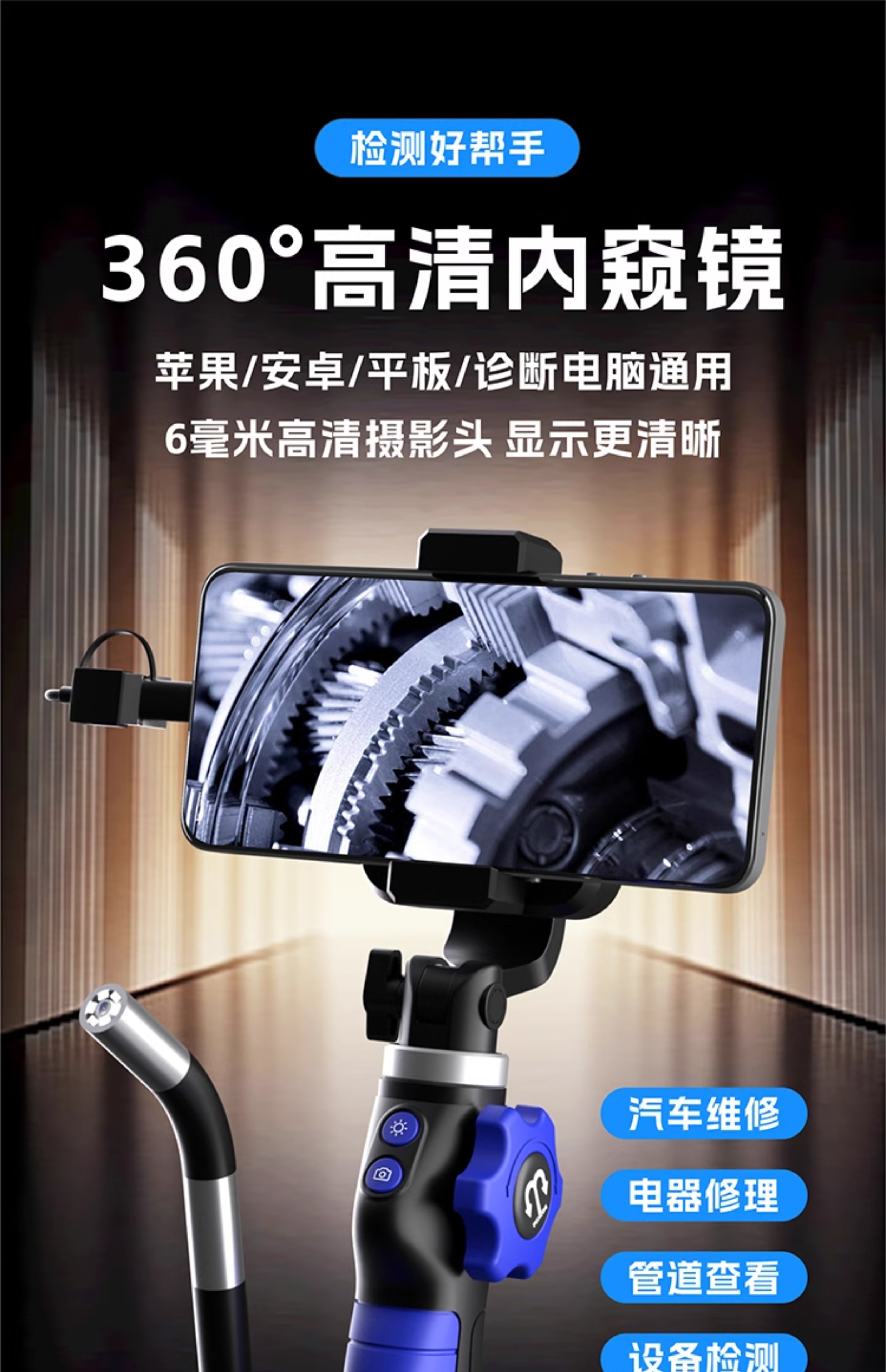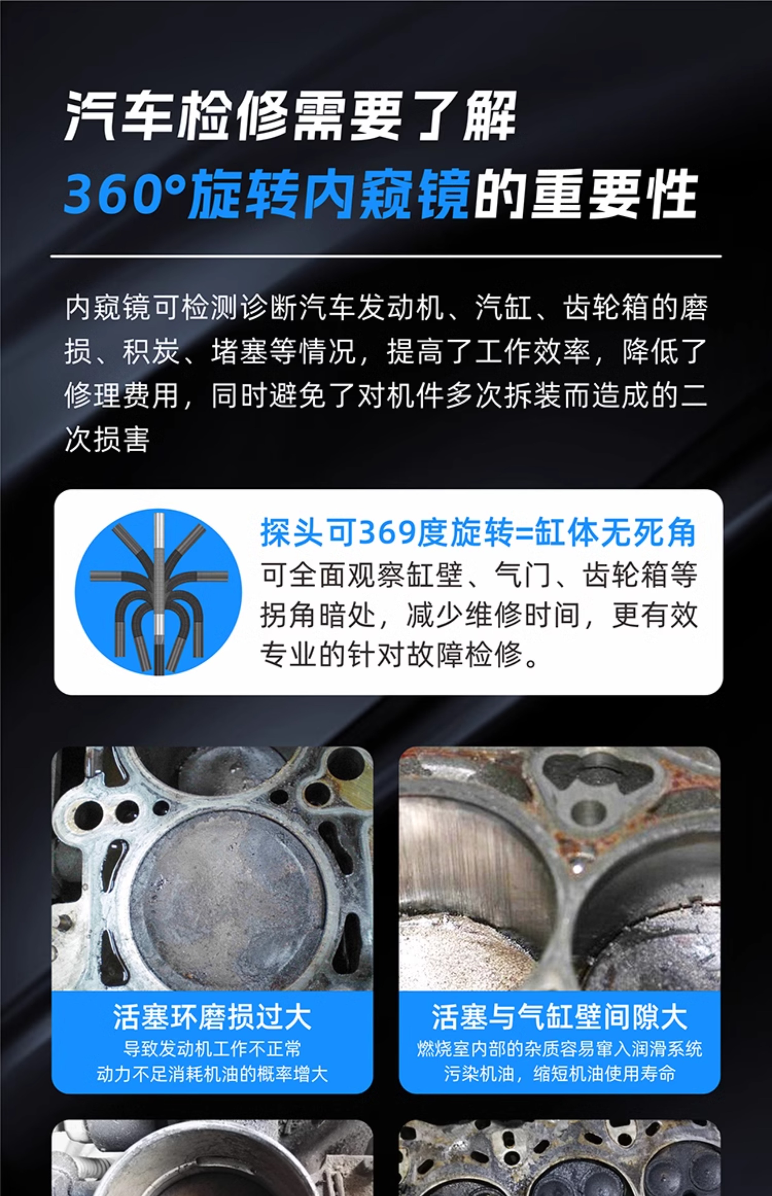 자동 수리 내시경 360 도 회전 산업용 클리어 카메라 휴대 전화 내시경 고온 저항 엔진