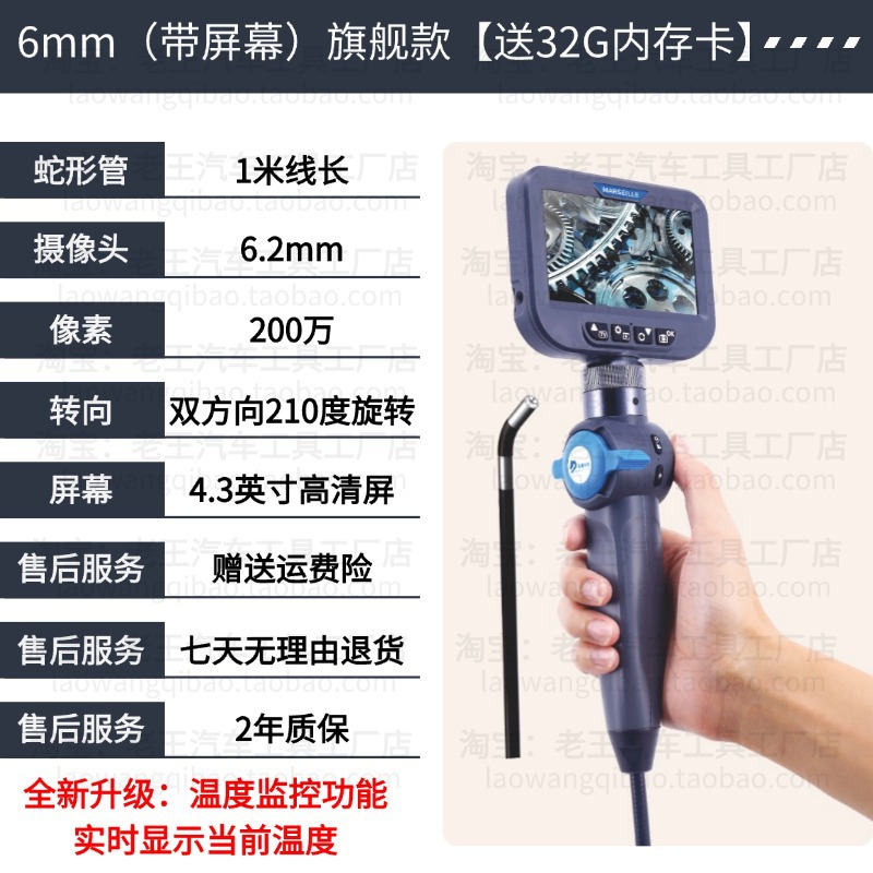 • 6mm [스크린 모델] [ 4.3inch 고화질 스크린] 무료 32G 메모리 카드/실시간 온도 모니터링/360도 회전/고온 저항