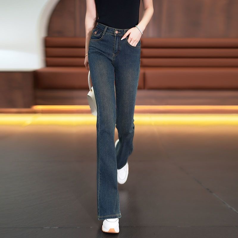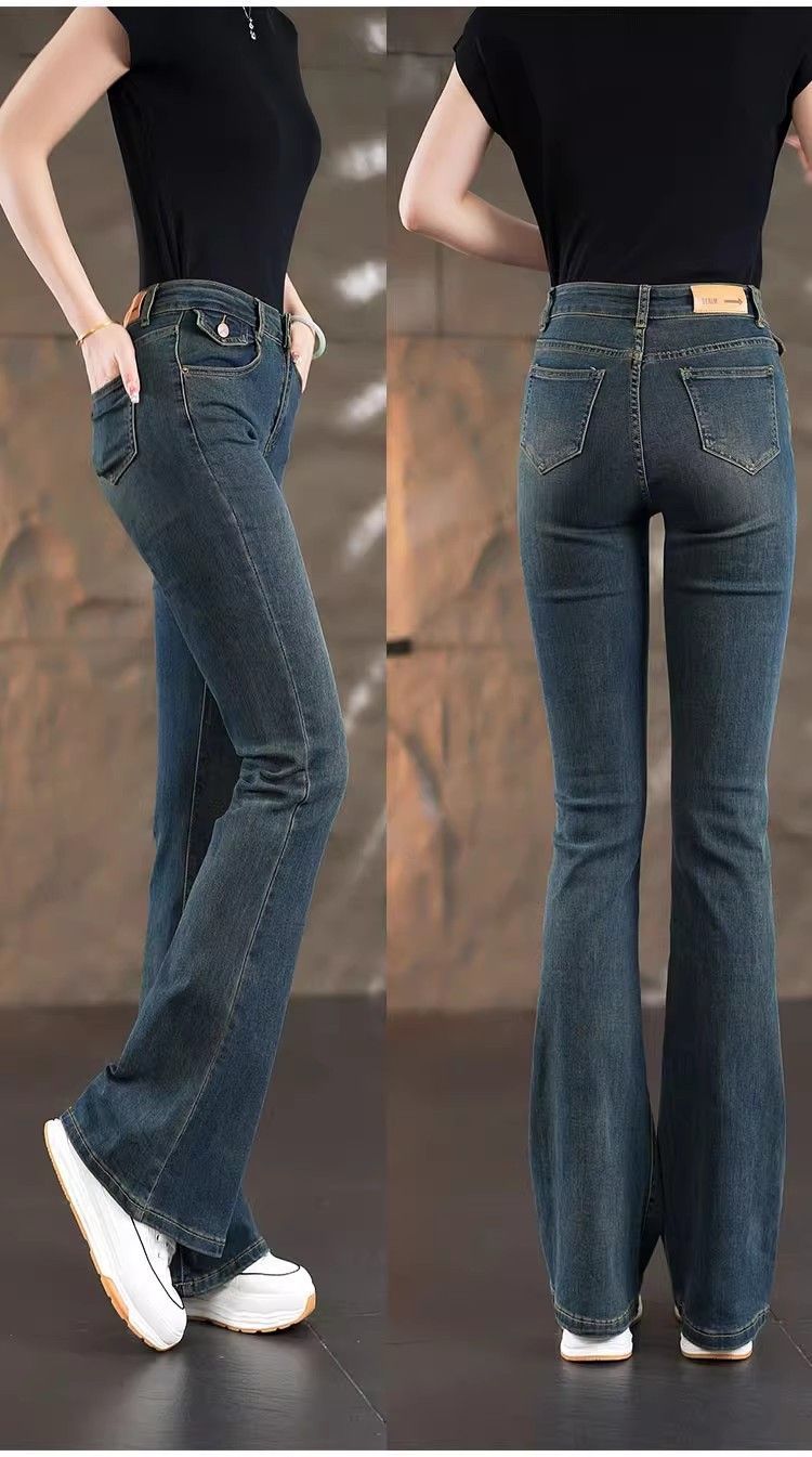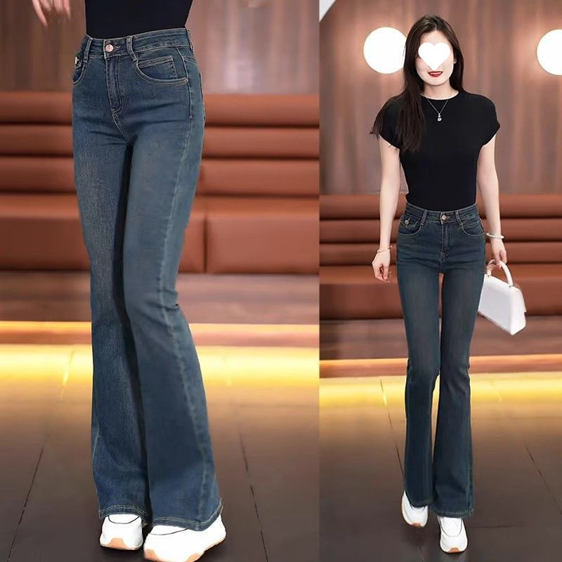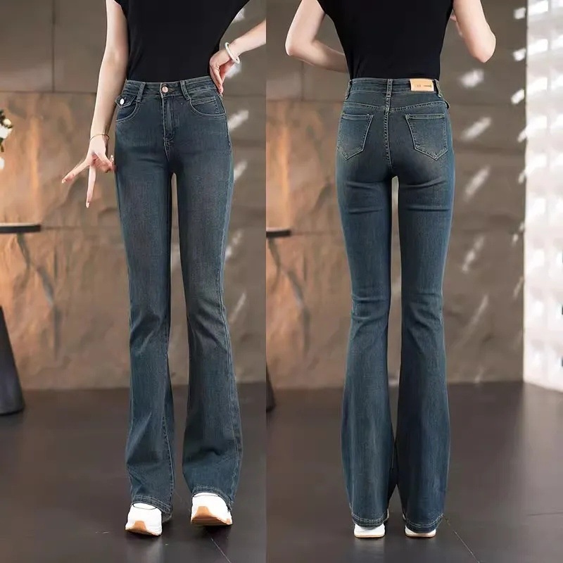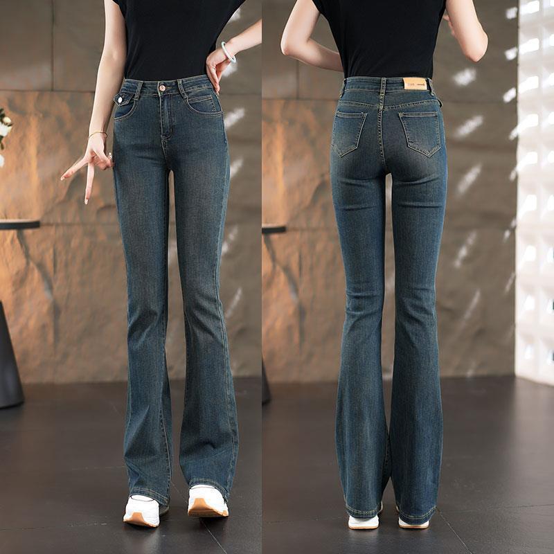 하이 웨이스트 마이크로 램 청바지 여성의 2025 년 봄과 가을 새로운 슬림 룩 하이 스트레치 슬림 핏 올 매치 바지스토어 가기