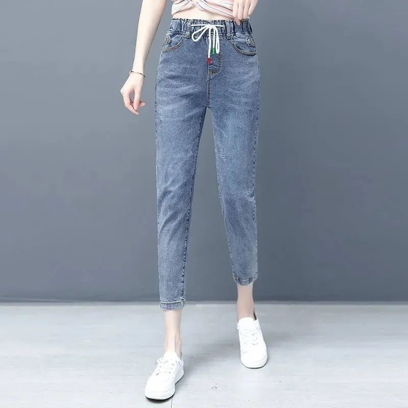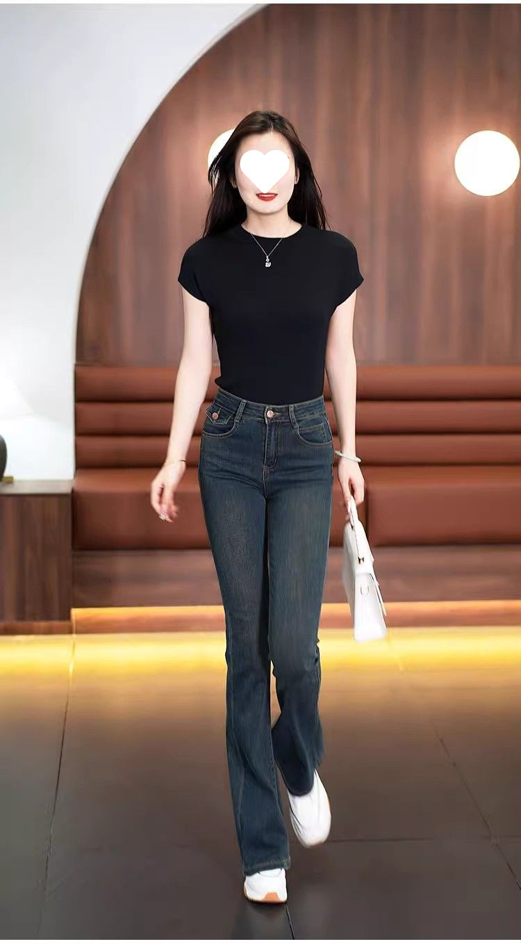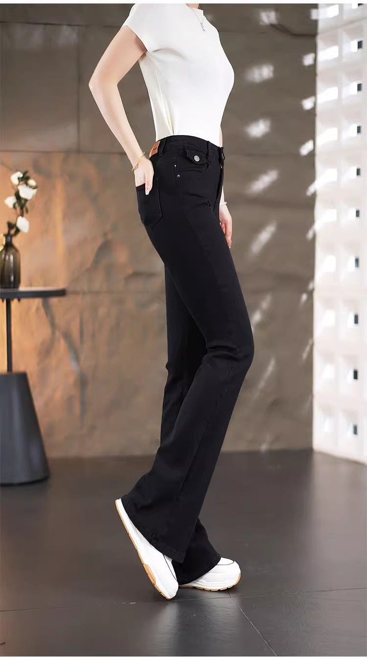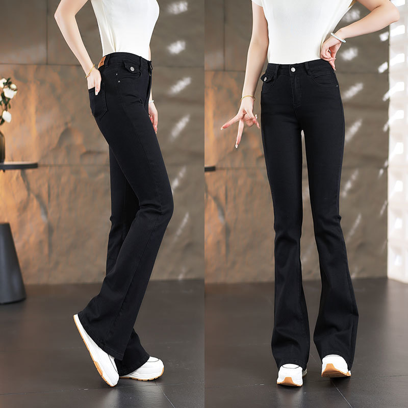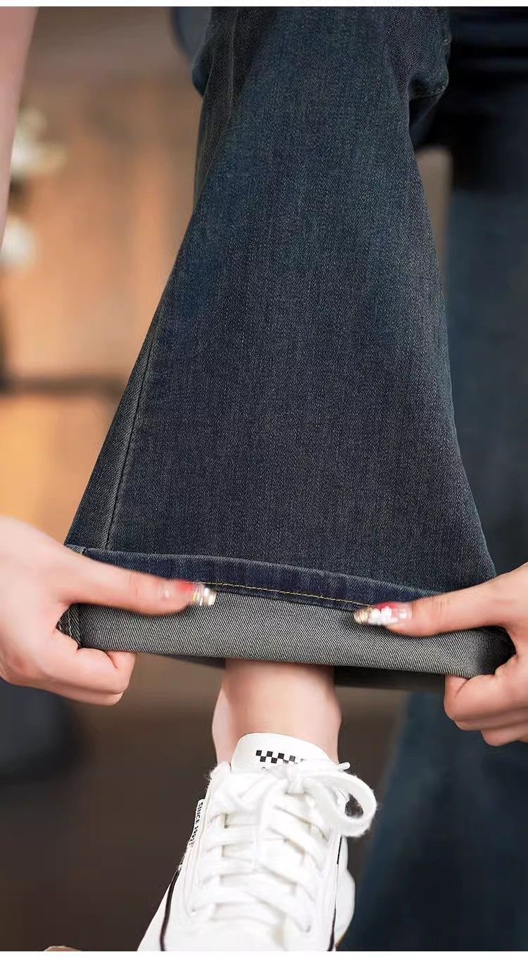 하이 웨이스트 마이크로 램 청바지 여성의 2025 년 봄과 가을 새로운 슬림 룩 하이 스트레치 슬림 핏 올 매치 바지스토어 가기