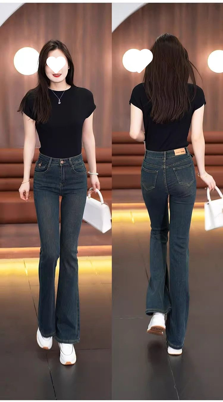 하이 웨이스트 마이크로 램 청바지 여성의 2025 년 봄과 가을 새로운 슬림 룩 하이 스트레치 슬림 핏 올 매치 바지