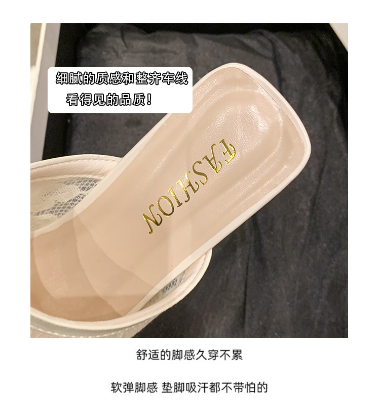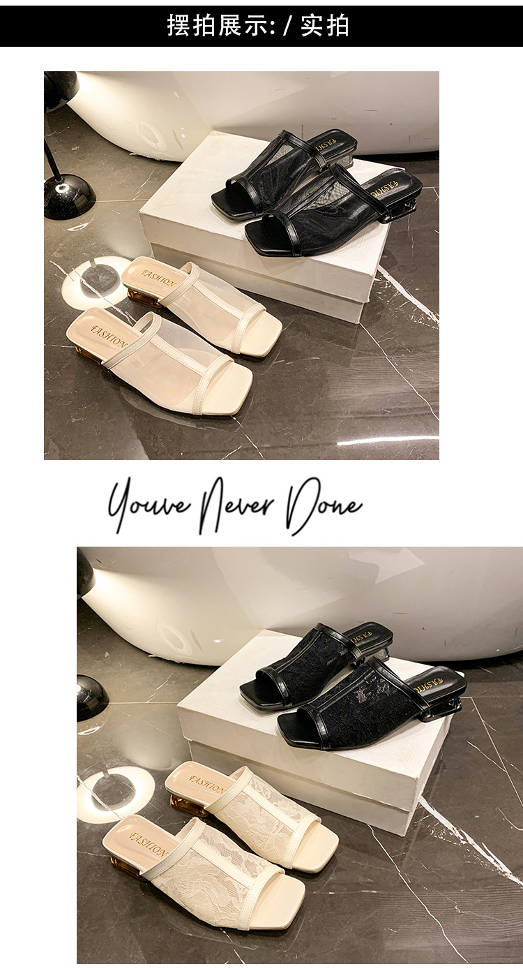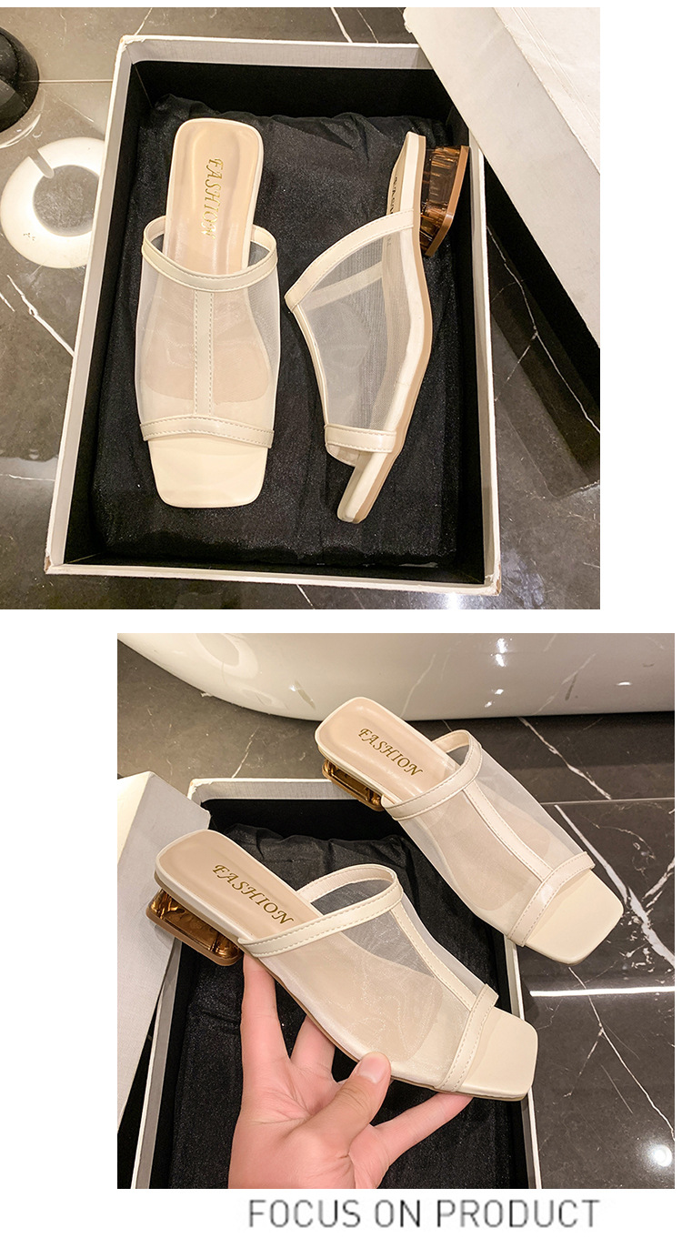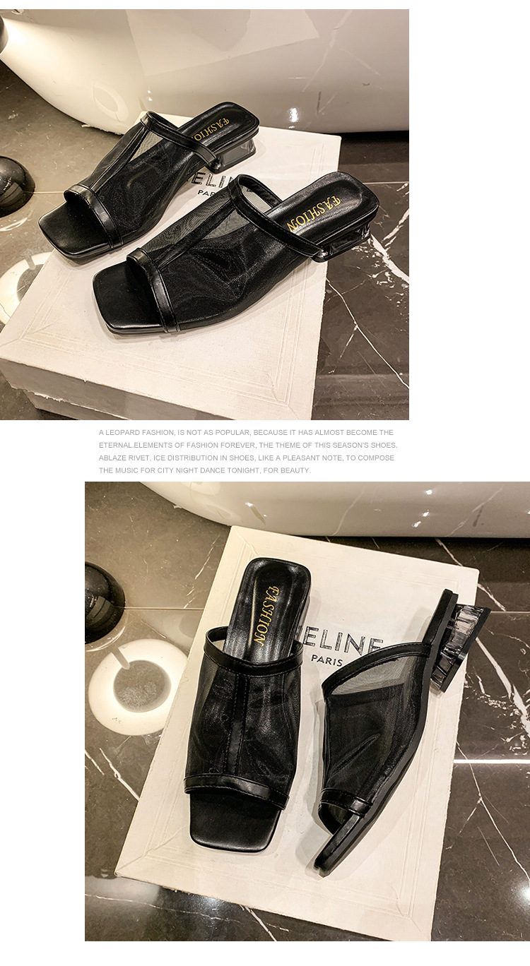 2025 년 여름 새로운 낮은 뒤꿈치 블록 뒤꿈치 외부 착용 샌들 및 슬리퍼 여성 캐주얼 할로우 메쉬 생선 입 원피스 패션 여성 신발