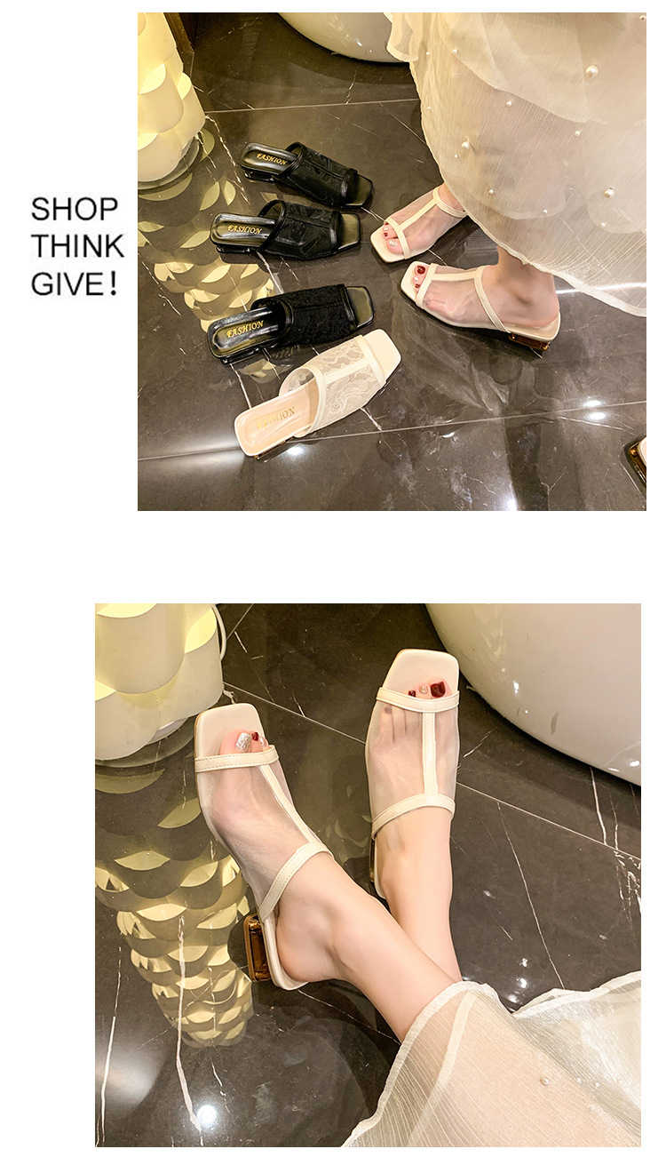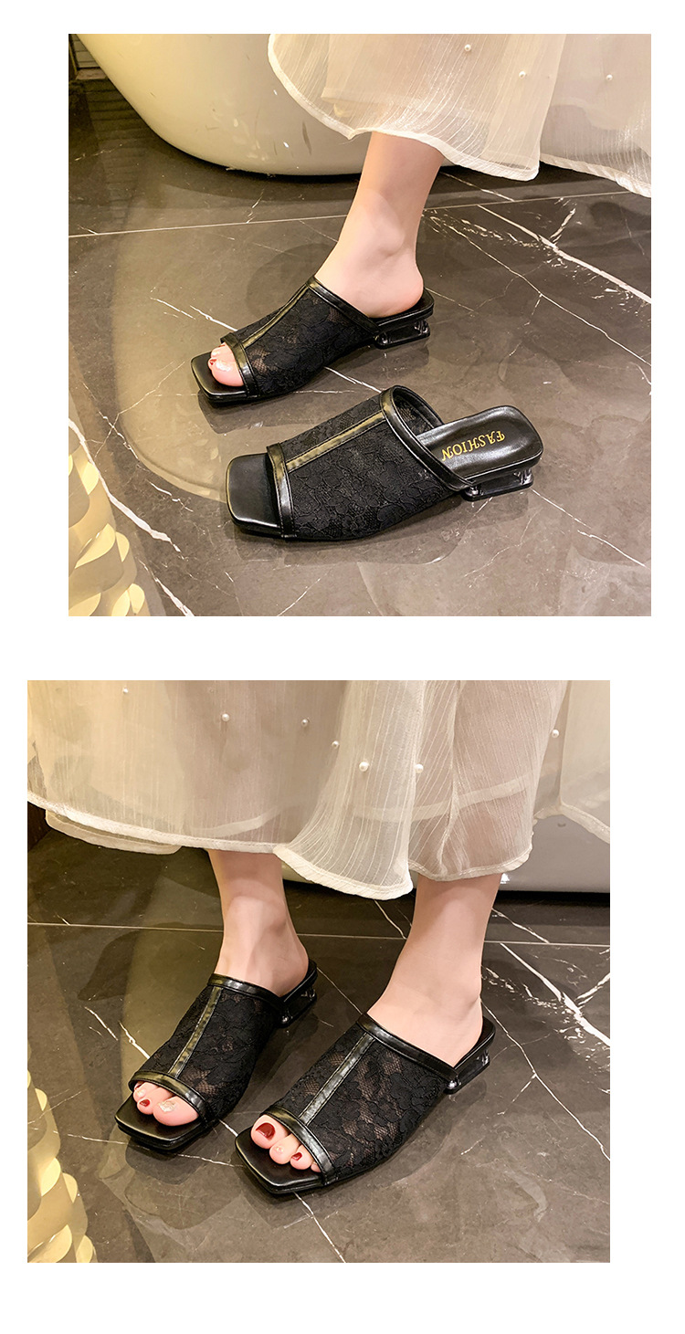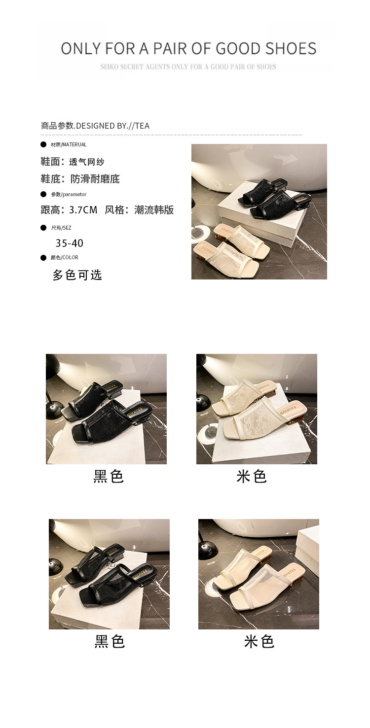 2025 년 여름 새로운 낮은 뒤꿈치 블록 뒤꿈치 외부 착용 샌들 및 슬리퍼 여성 캐주얼 할로우 메쉬 생선 입 원피스 패션 여성 신발