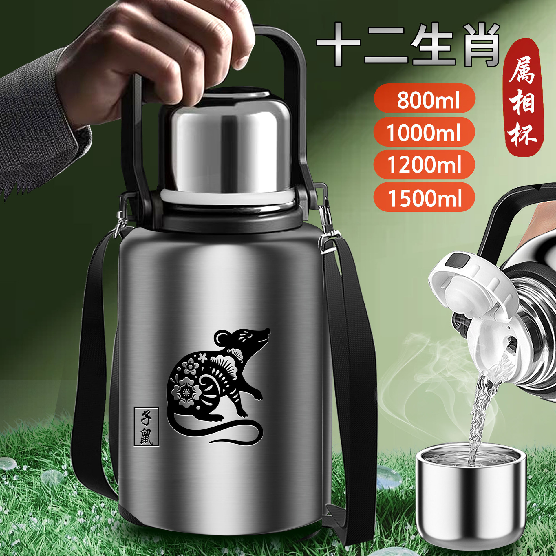 인쇄 된 조디악 대용량 열 절연 주전자 304 스테인레스 스틸 열 절연 물 컵 남자와 여자의 차 물 분리 버블 컵