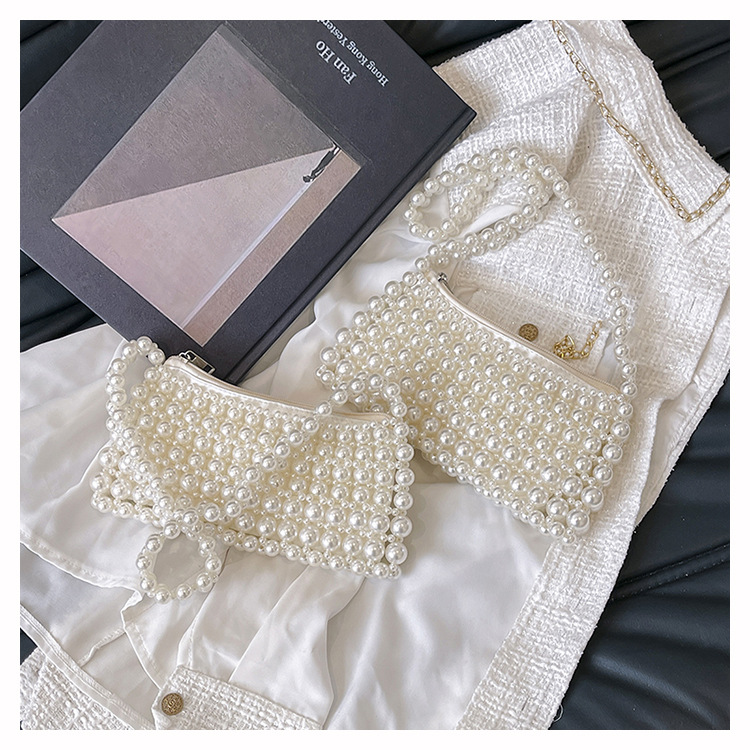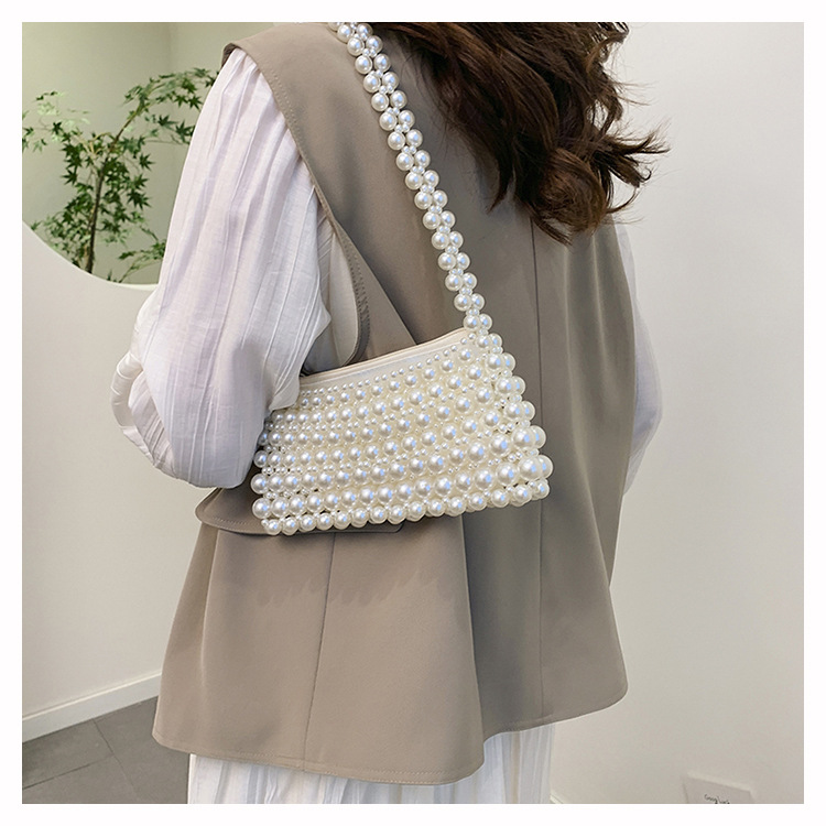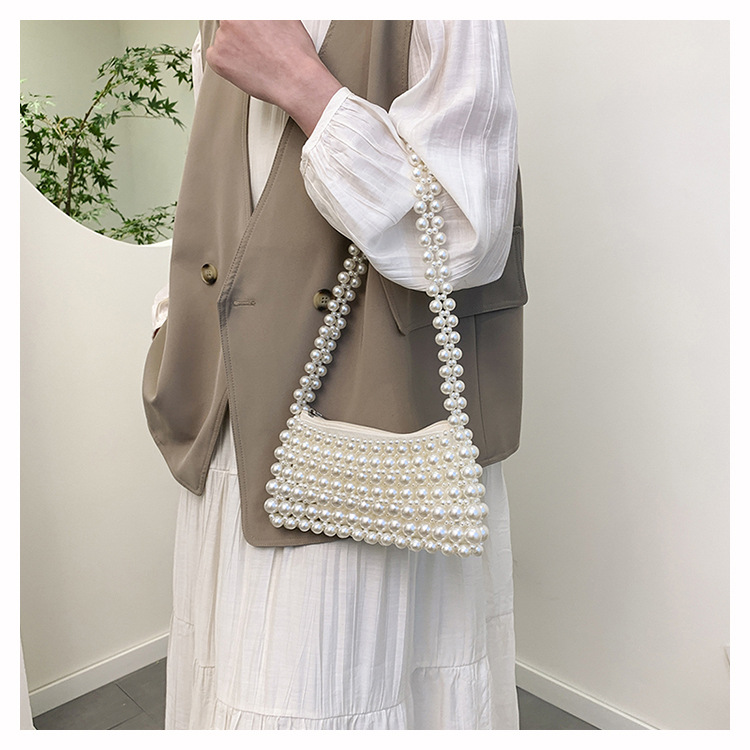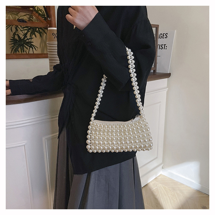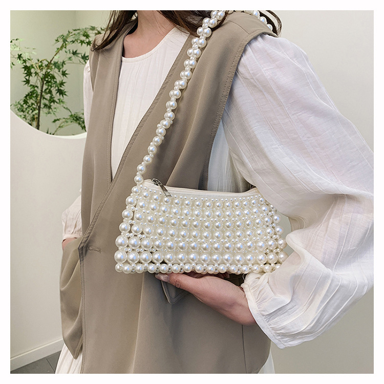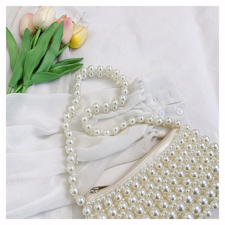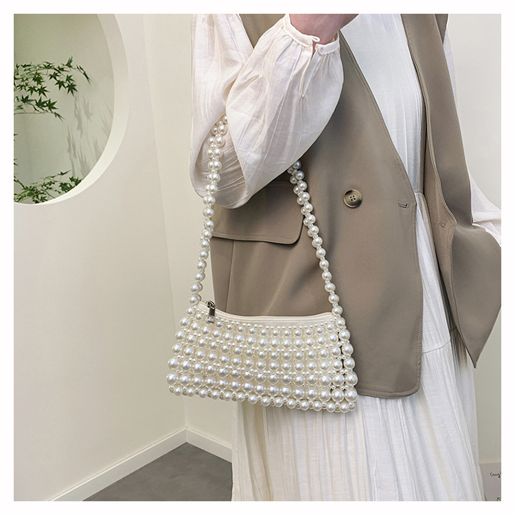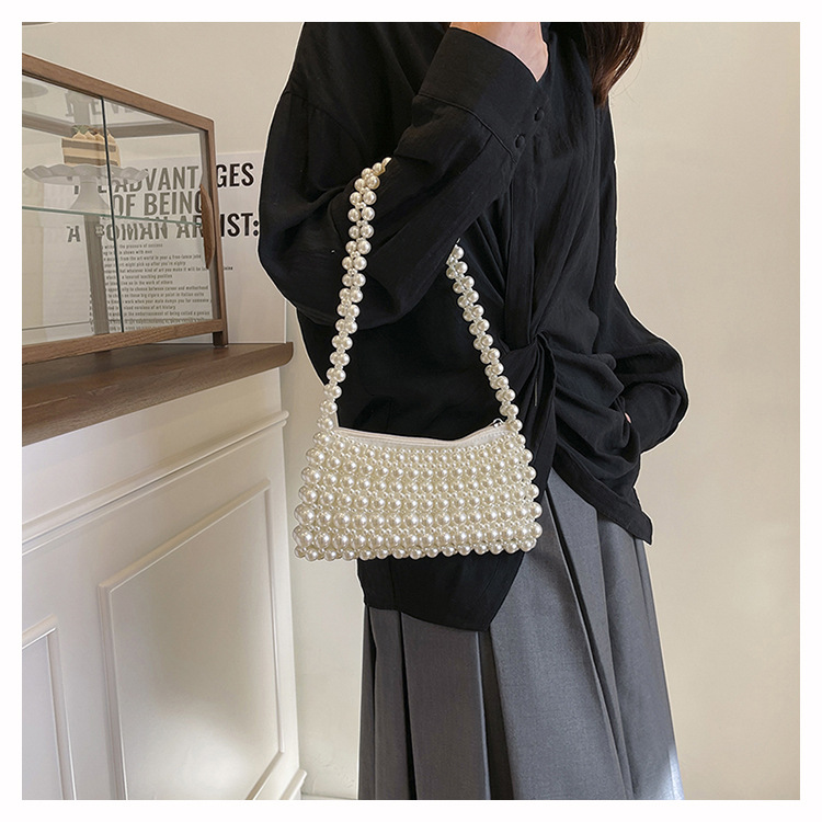 새로운 숙녀 하이 엔드 펄 핸드백 언더암 가방 패션 간단한 스타일 짠 크로스 바디 수제 진주 가방스토어 가기