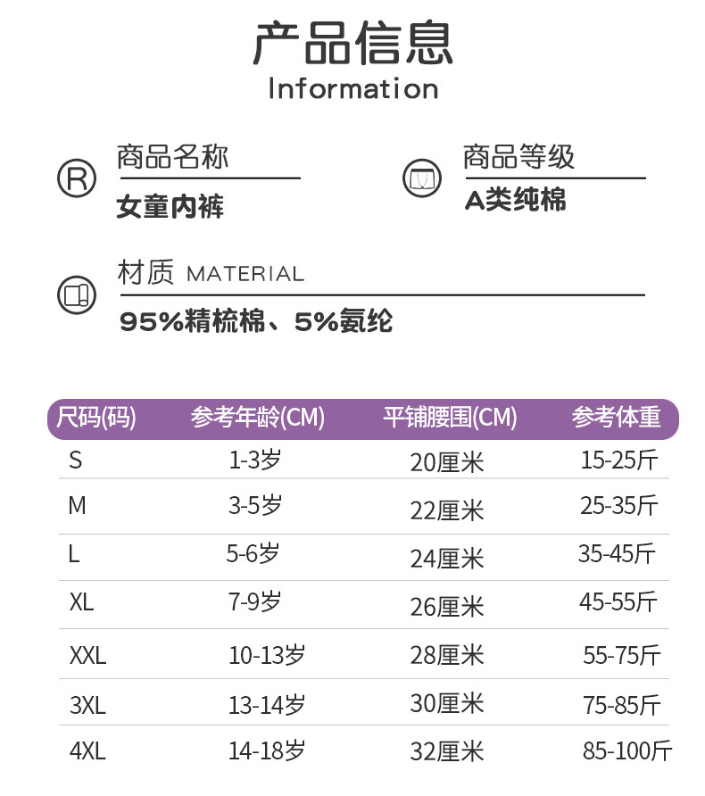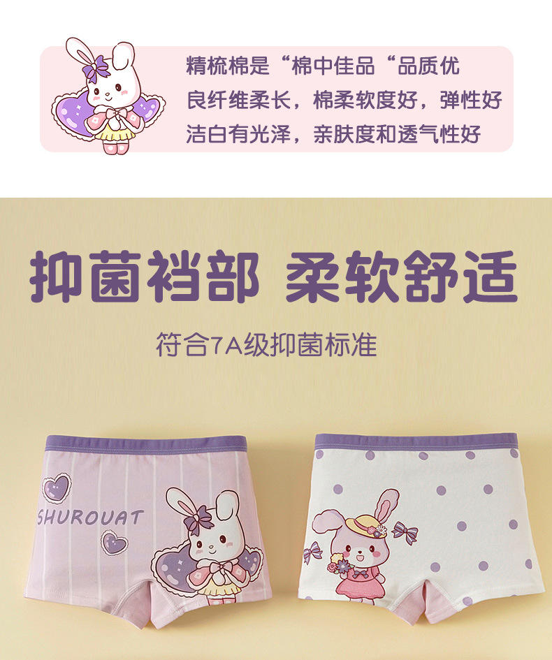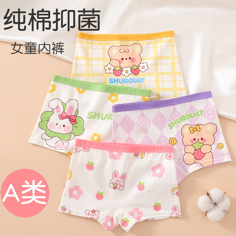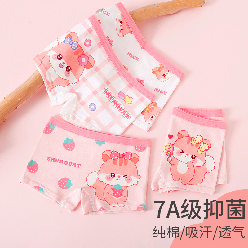 [무료 배송] 중대형 아동용 속옷, 여아용 부드럽고 편안한 사각팬티, 7A 등급 항균 사각팬티스토어 가기