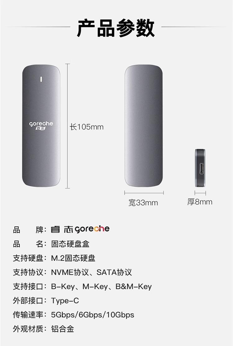 Rui Zhi Rui Yuan M.2NVME 프로토콜 usb3.1Gen2 하드 드라이브 인클로저 모바일 SSD 모바일 솔리드 스테이트 TYPE-C 인터페이스스토어 가기