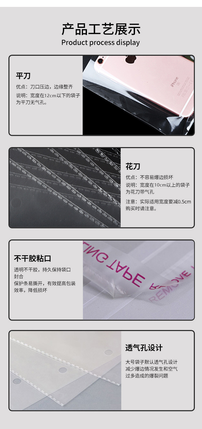 • OPP 투명 접착식 가방, 50*70(66+4)9 실크(공기 구멍 포함)