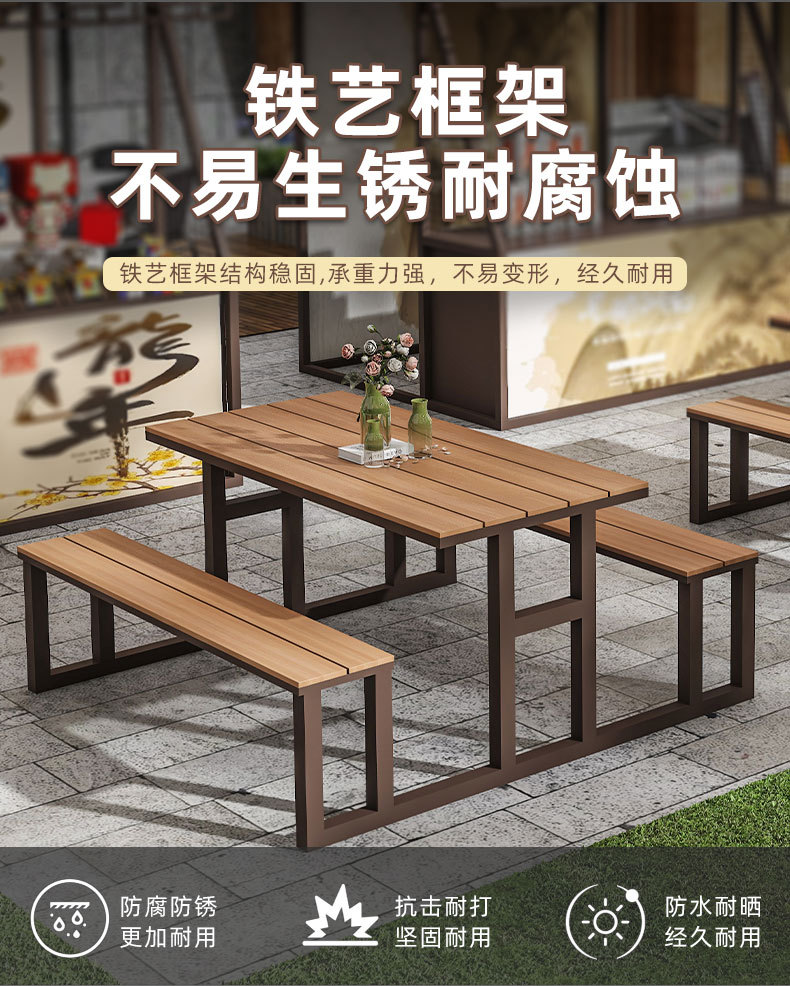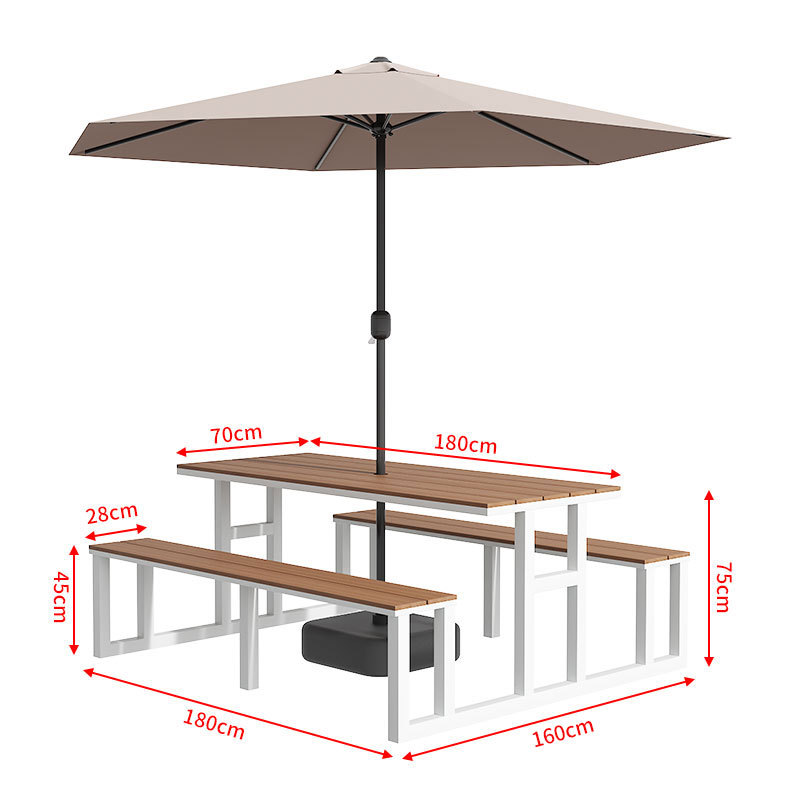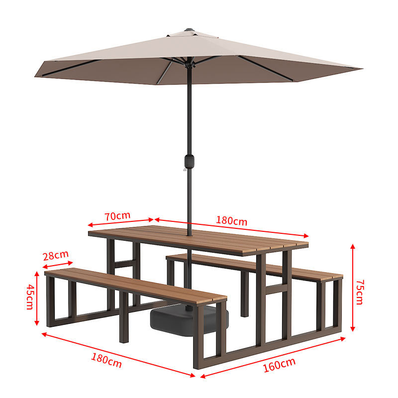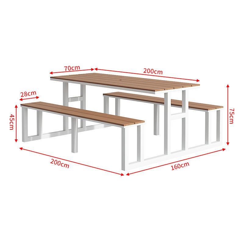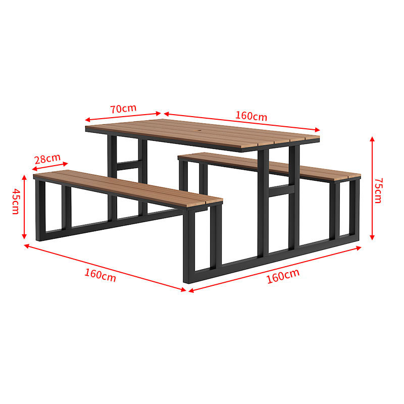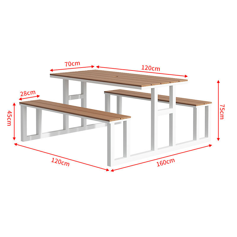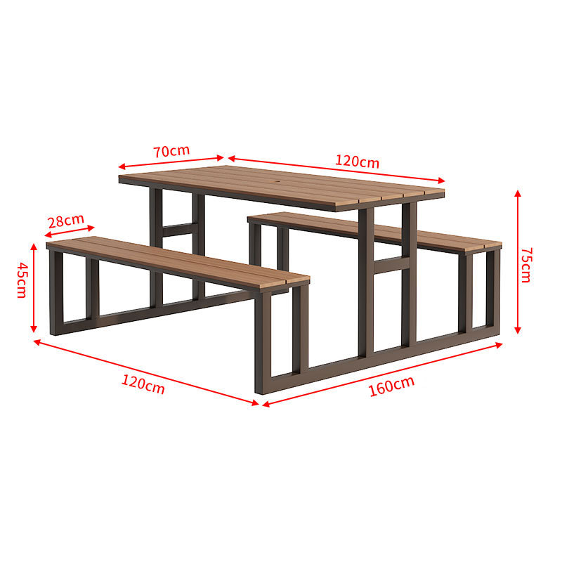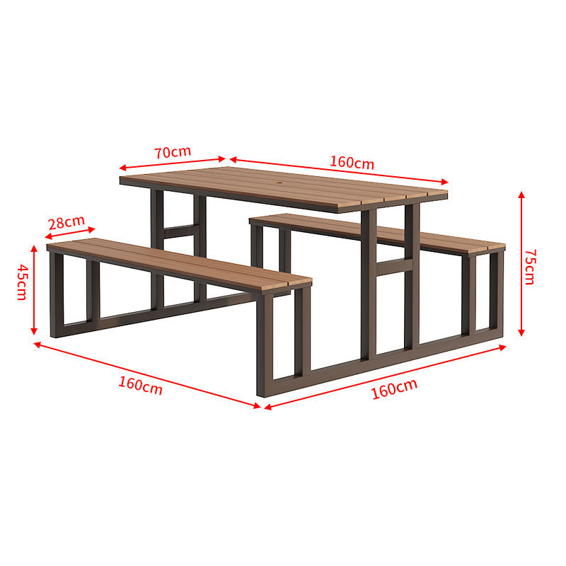 알루미늄 프레임 아트 가든 PE 테이블과 의자 벤치 파크 방수 아름다운 안뜰 조합을 지원하는 야외 플라스틱 목재 결합 테이블 및 의자