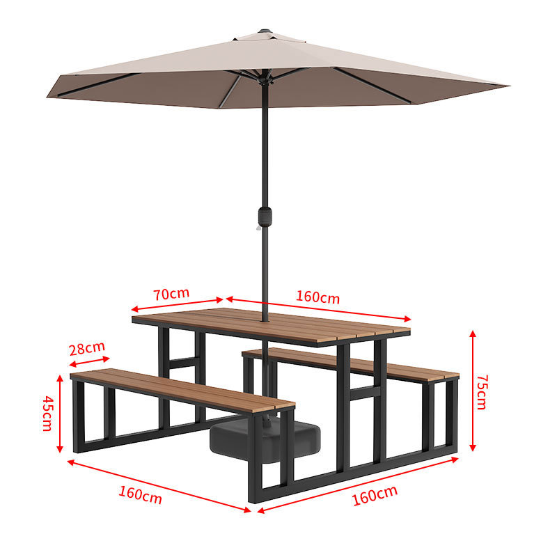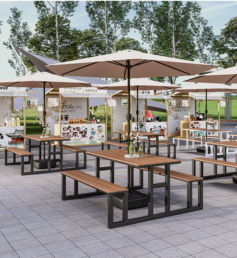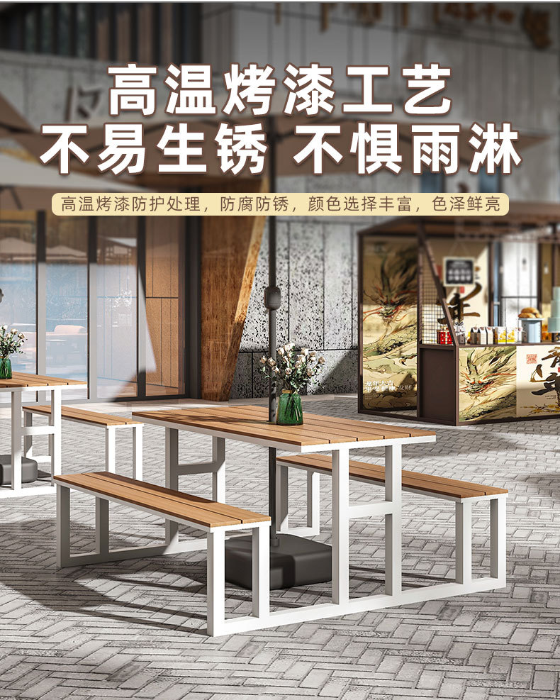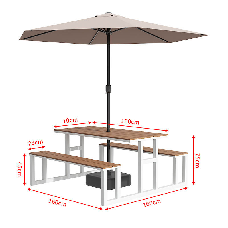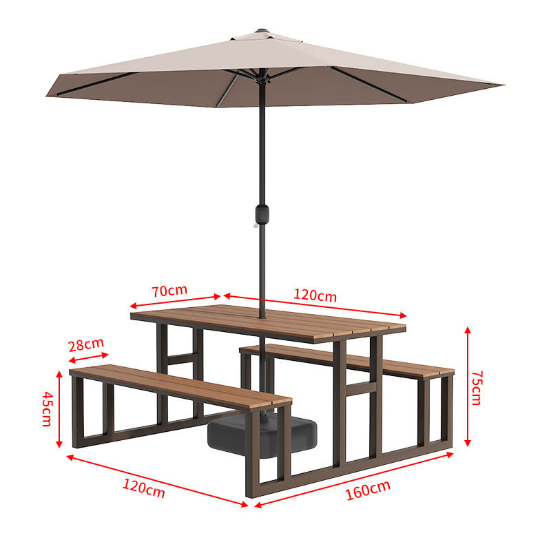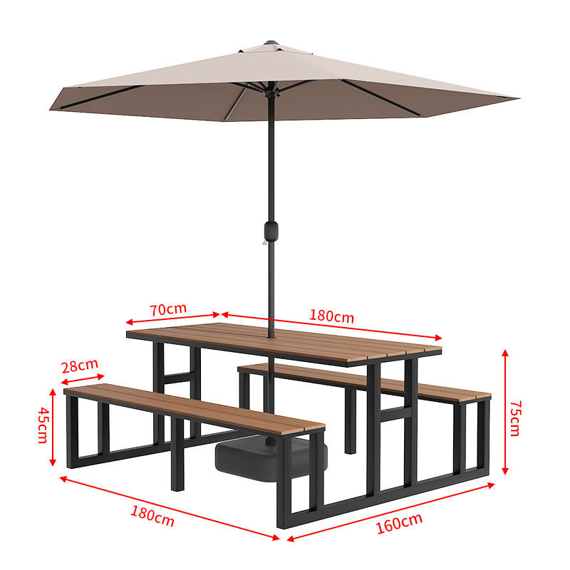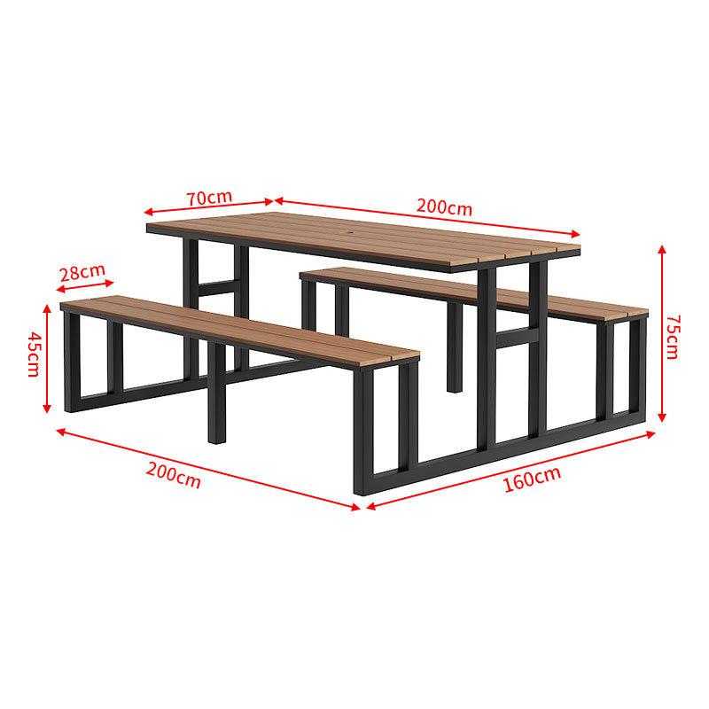 알루미늄 프레임 아트 가든 PE 테이블과 의자 벤치 파크 방수 아름다운 안뜰 조합을 지원하는 야외 플라스틱 목재 결합 테이블 및 의자