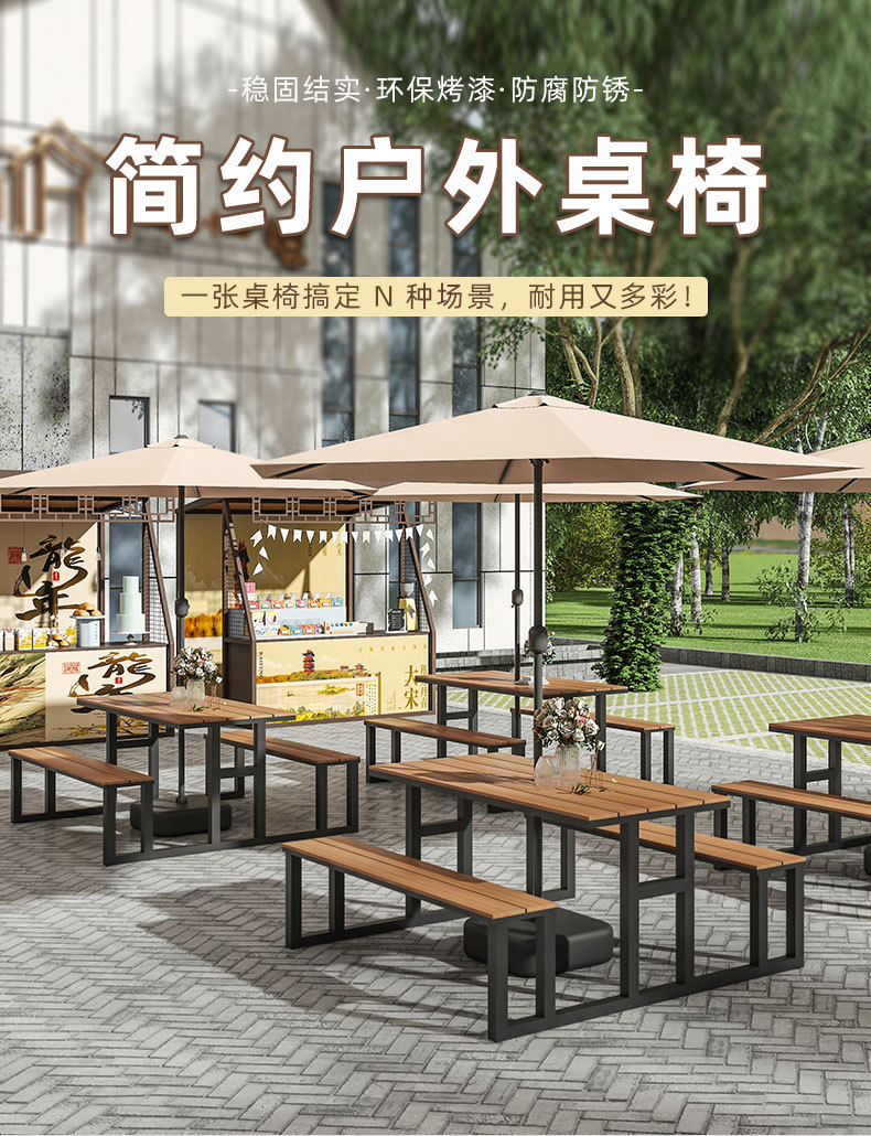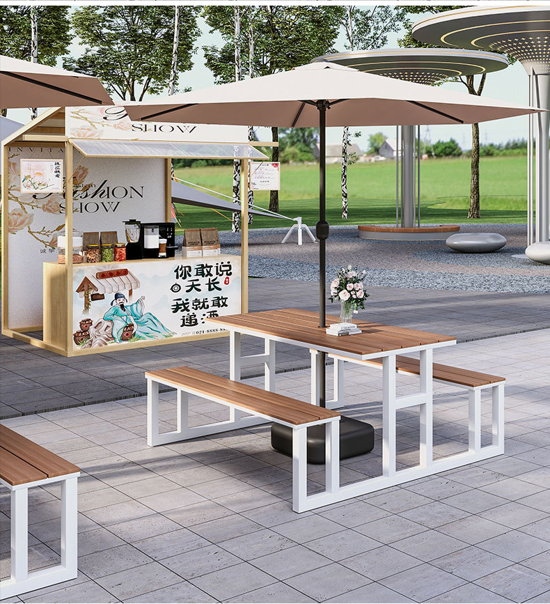 알루미늄 프레임 아트 가든 PE 테이블과 의자 벤치 파크 방수 아름다운 안뜰 조합을 지원하는 야외 플라스틱 목재 결합 테이블 및 의자스토어 가기