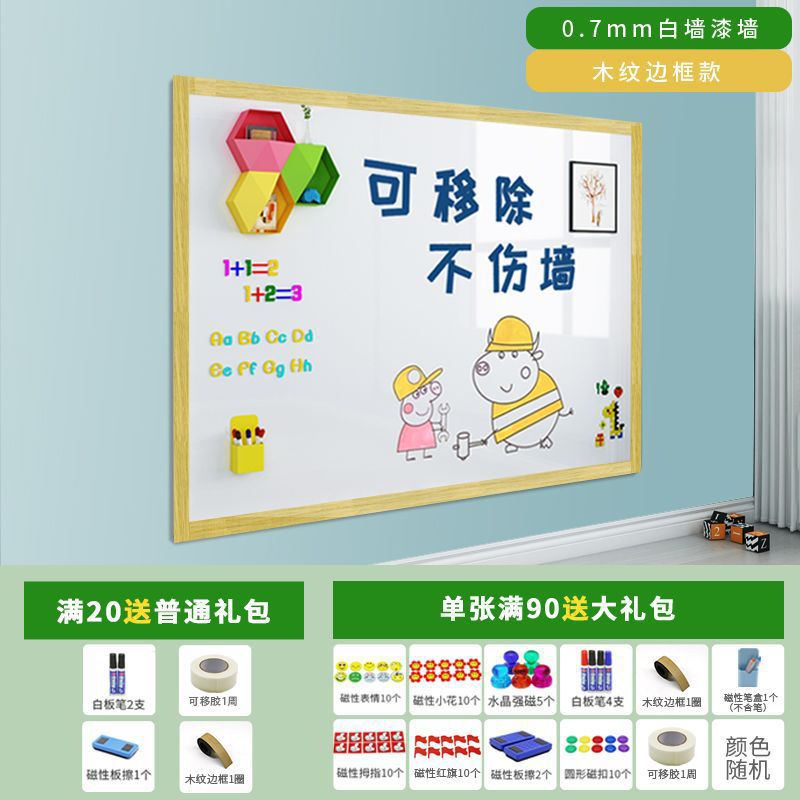 • 화이트보드 [흰색 페인트 벽 전용] 탈착식 접착제-나뭇결 프레임-90x100cm (표준 선물 패키지)