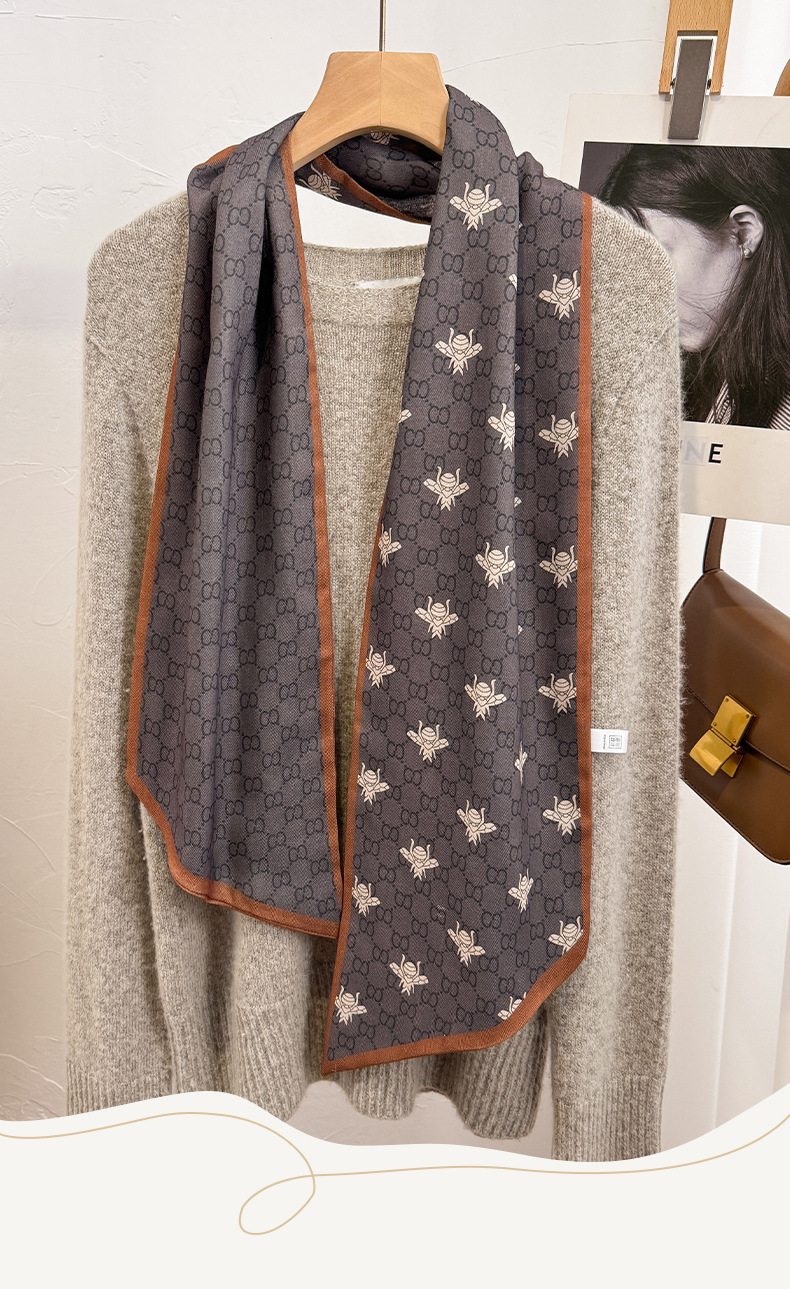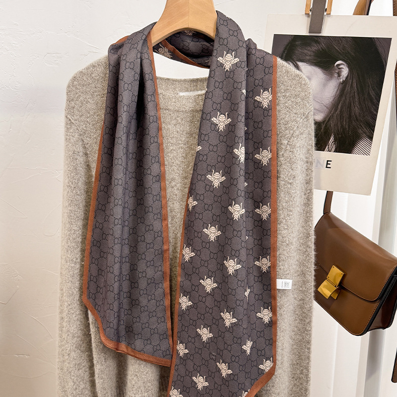 봄 여름 더블 레이어 벨벳 스카프 오래 된 머니 스타일 동물 패턴 어머니 올 매치 장식을위한 여성의 긴 리본 스카프스토어 가기