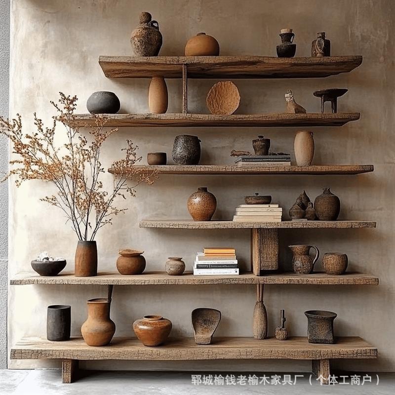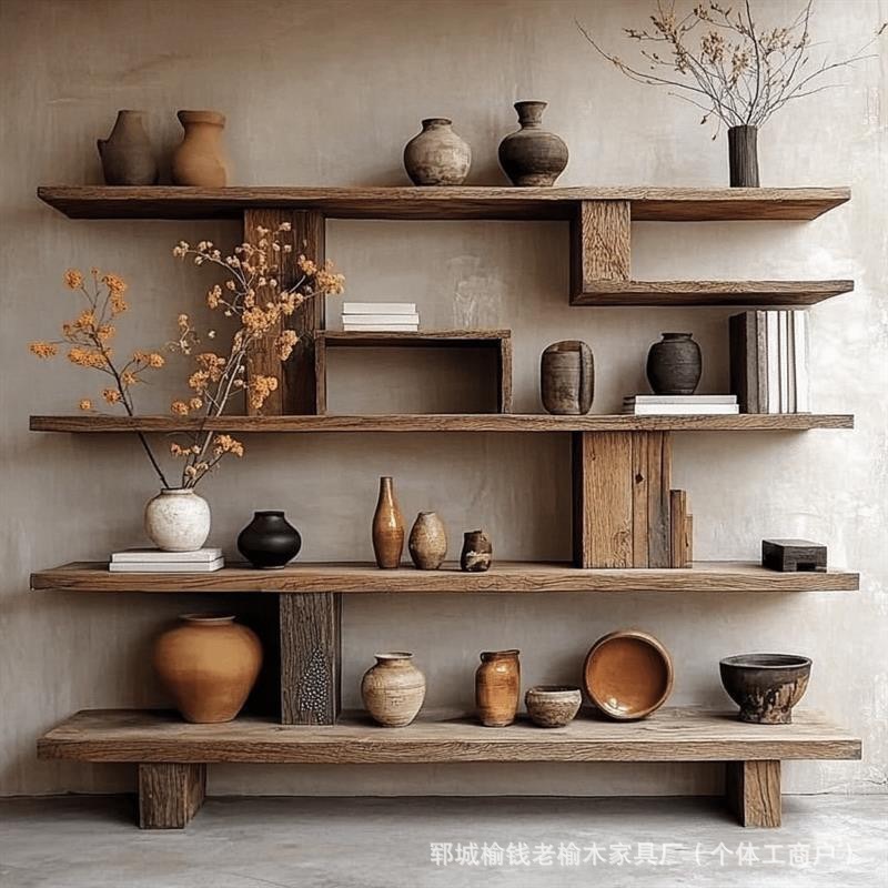 새로운 중국 스타일 올드 엘름 고대 랙 홈 거실 파티션 홈스테이 빈티지 스토리지 랙 입구 차 보관 캐비닛스토어 가기