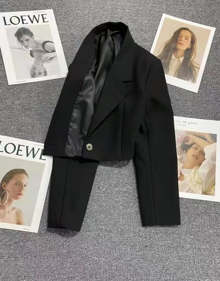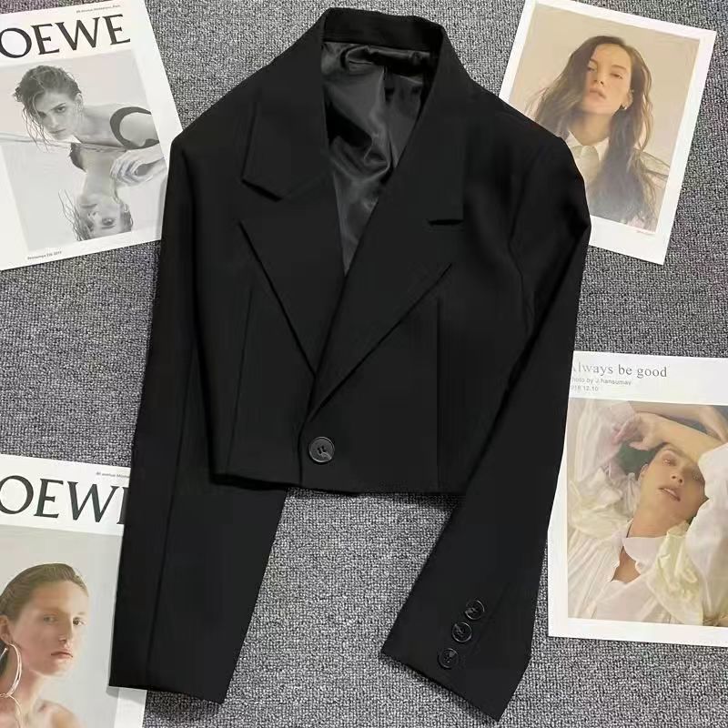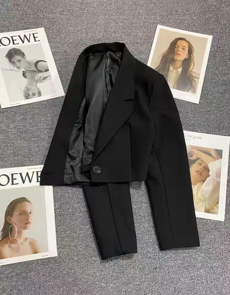 A6C 짧은 세트 재킷 여성의 봄과 가을 새로운 우아한 하이 엔드 슬림 핏 작은 블랙 캐주얼 세트스토어 가기
