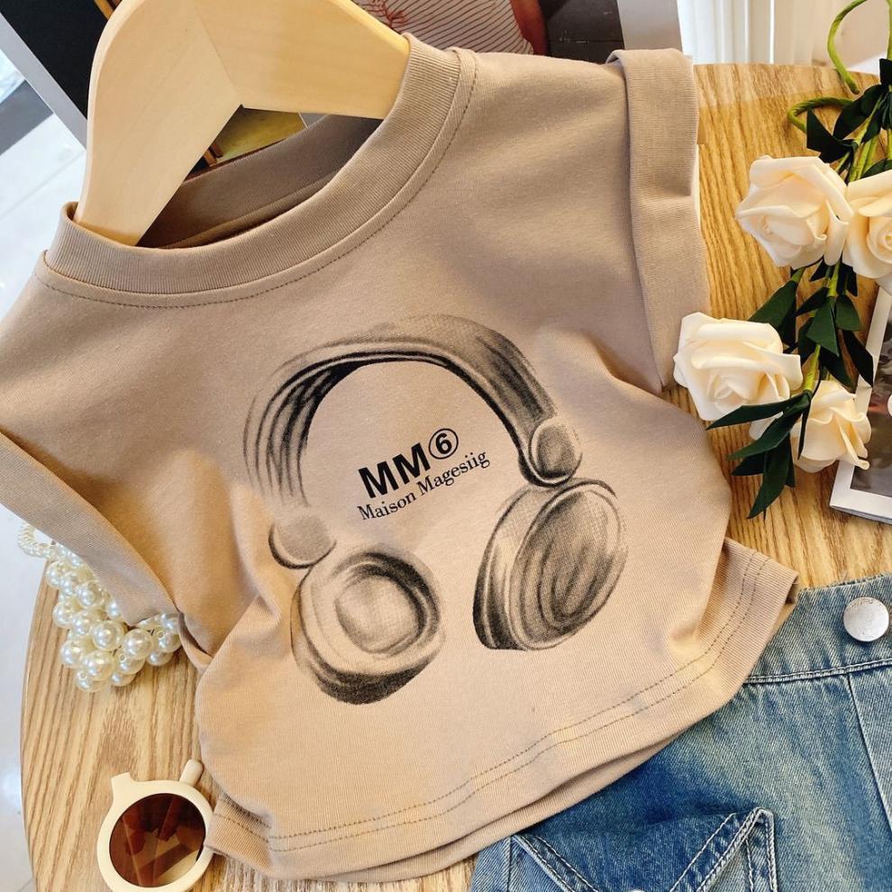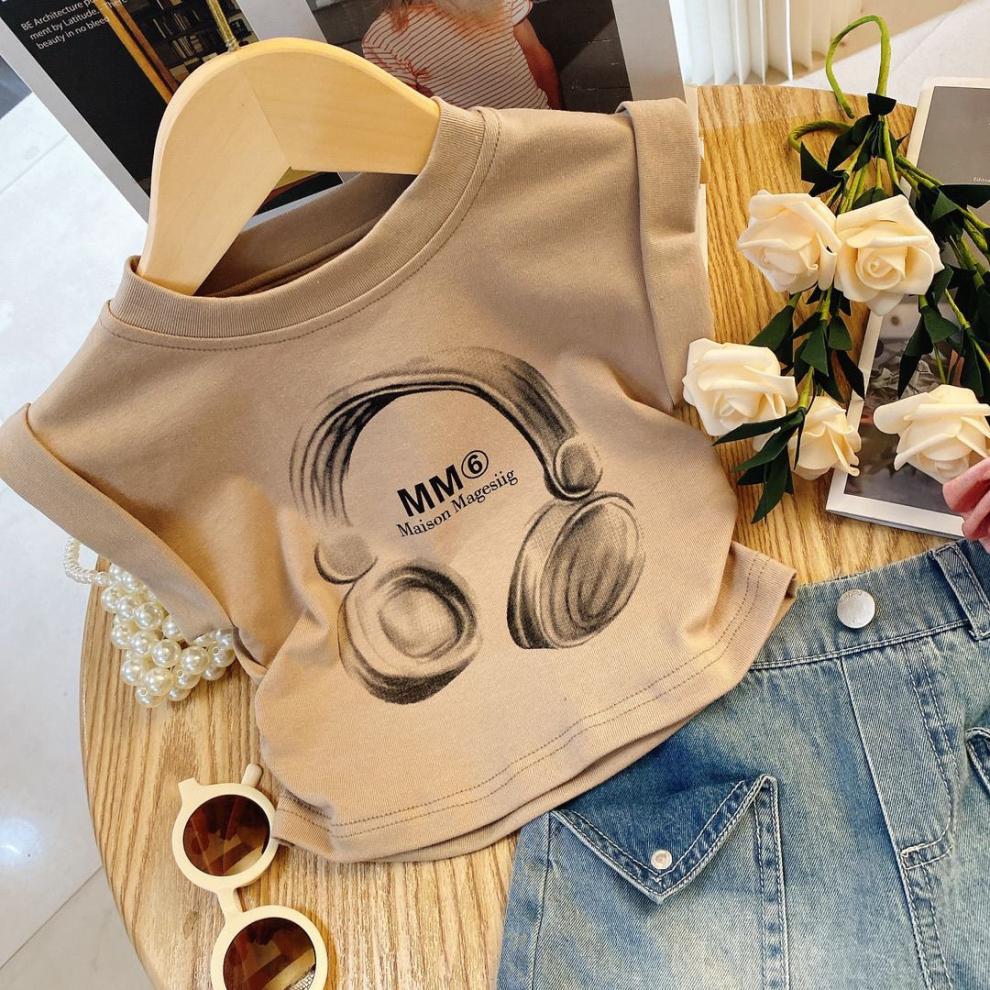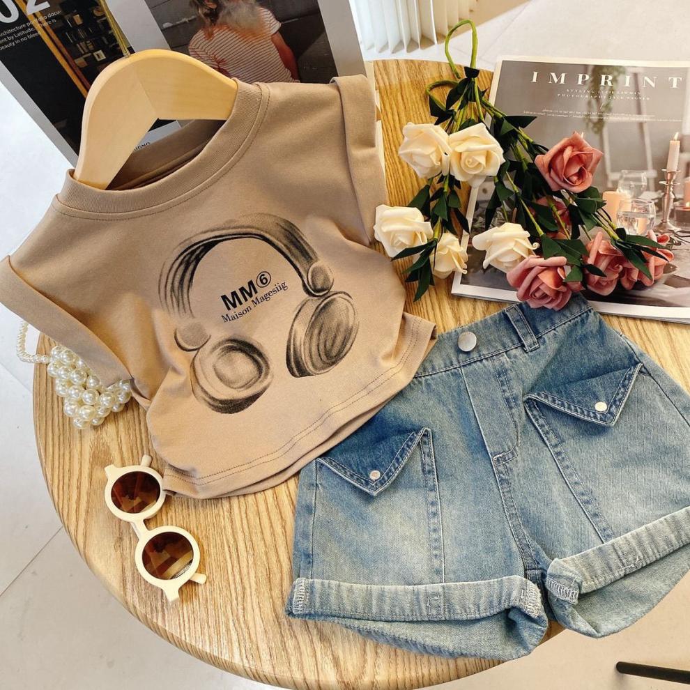 • 카키 헤드폰 티셔츠 + 플립 데님 반바지