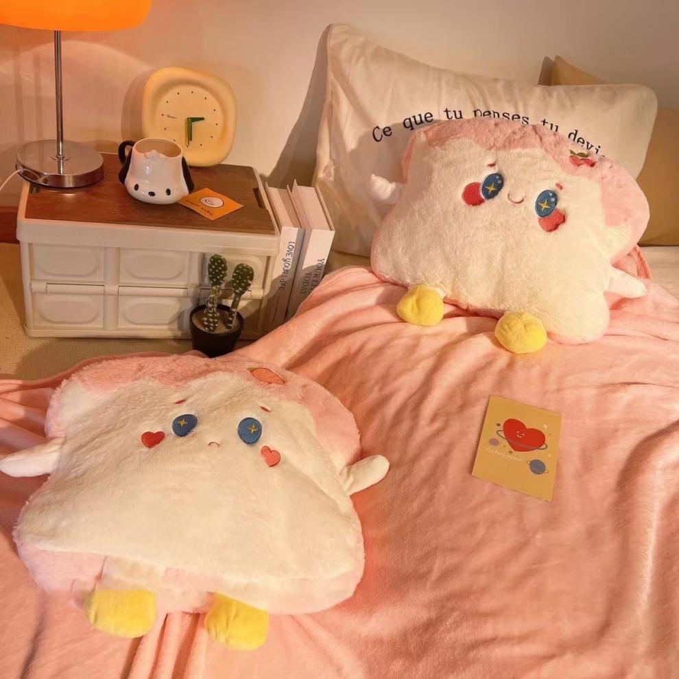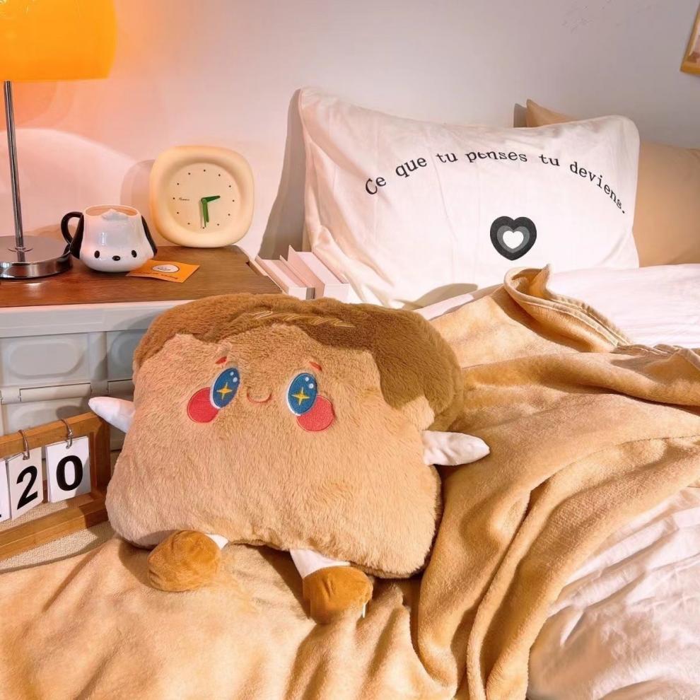 귀여운 토스트 베개 이불 이중 사용 사무실 낮잠 인공물 에어컨 담요 2 대 1 생일 선물스토어 가기