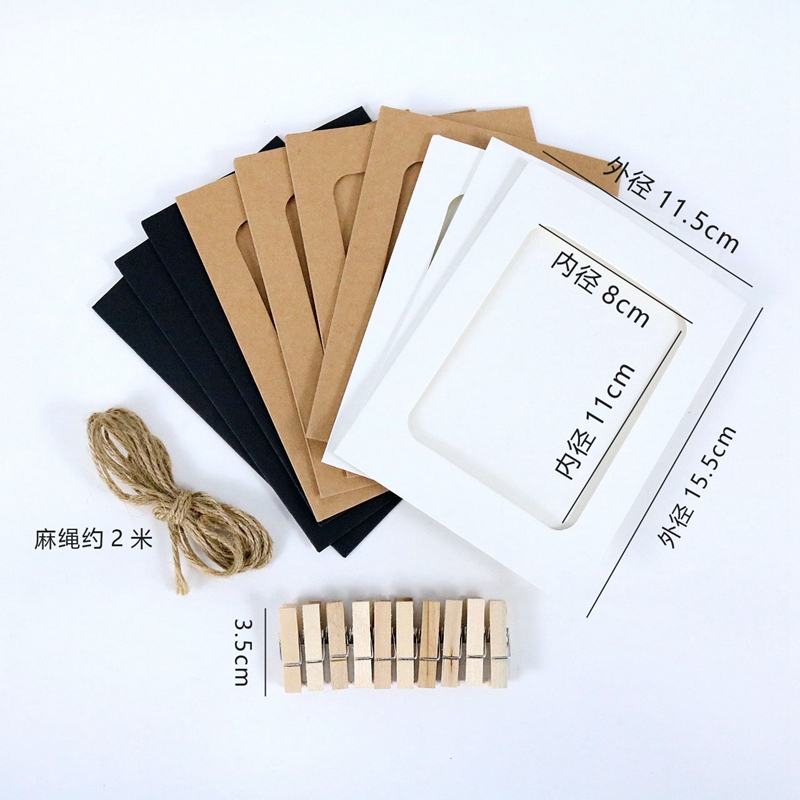 • 삼색 혼합 크라프트지 액자, 나무 클립 10개 + 대마 밧줄 2m
